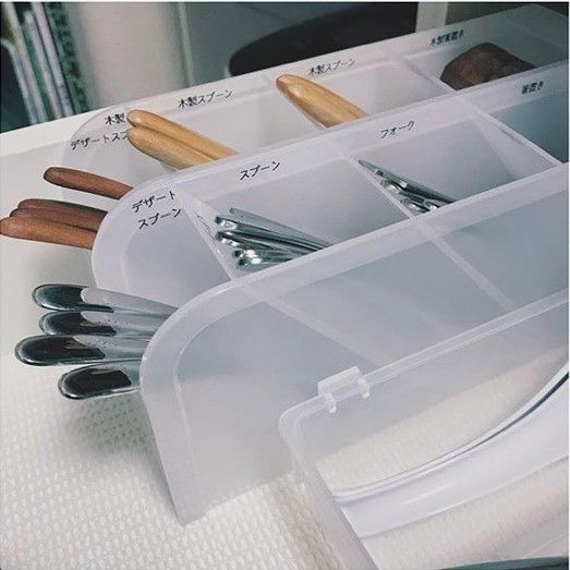 カラトリーを取り出す際、柄が一緒で取りだしたいものを取り出せない…。そんなプチストレスを解消するのが、こちらのようなラベリングです。取り出しやすいだけでく、家族みんながお片づけ上手になれるナイスアイデアです。