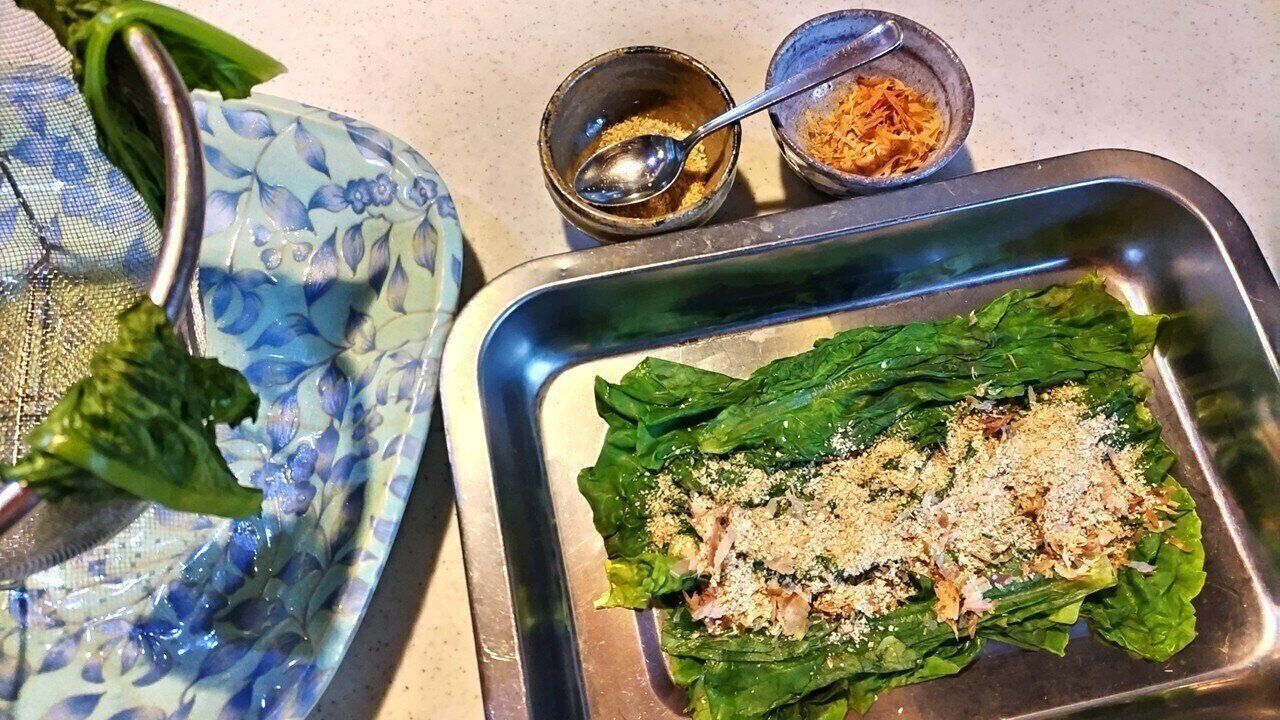 見た目では、ほうれん草や小松菜にしか見えませんが、食べてみるとあっさりとした味になっていますよ。ごまとかつお節の香りやうま味がたっぷりと堪能できる一品です。