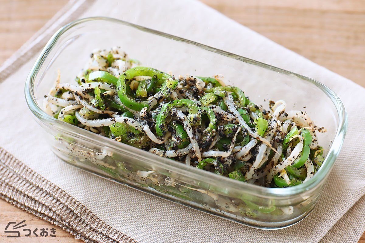 「ピーマンともやしの和風ごま和え」は、もやしとピーマンをメインにつくる一品。和風な味つけでいくらでも食べ進められますよ。副菜にはもちろん、お弁当のおかずとしてもおすすめのメニューです。