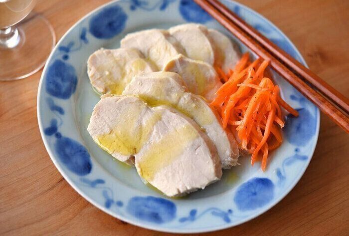 サラダチキンも、作り置きをしておくと便利なメニューのひとつ。こちらのレシピでは、身近な調味料を使っているので、自宅でも手軽につくることができます。サラダやあえ物、炒め物の具材に使ってもおいしいですよ。