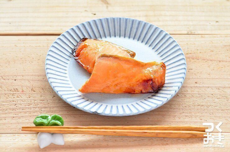 みりんの甘味をきかせた、鮭のみりん漬け焼き。ホッと落ち着く味わいが食欲をそそります。漬けた状態と焼いた後、合わせて5日ほど冷蔵保存が可能なので、あともう一品ほしいときやお弁当用に常備しておくと重宝しますよ。