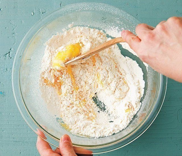 木べらで、粉っぽさが残る程度に混ぜる。