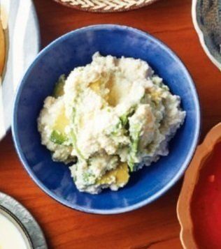 木綿豆腐1/2丁はペーパータオルで水けを拭き取ってボウルに入れ、泡立て器などでかき混ぜて粗いペースト状にして、ごま油小さじ2、塩小さじ1/4を混ぜる。一口大に切ったアボカド(大)1個をざっと混ぜる。