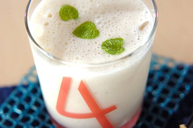 バナナと好相性のヨーグルトを組み合わせた、簡単ヘルシージュース。バナナとはちみつの甘味が絶妙で、ゴクゴク飲みたくなっちゃいますよ。仕上げにミントの葉を飾れば、色合いもさわやかな朝ごはんができあがります。