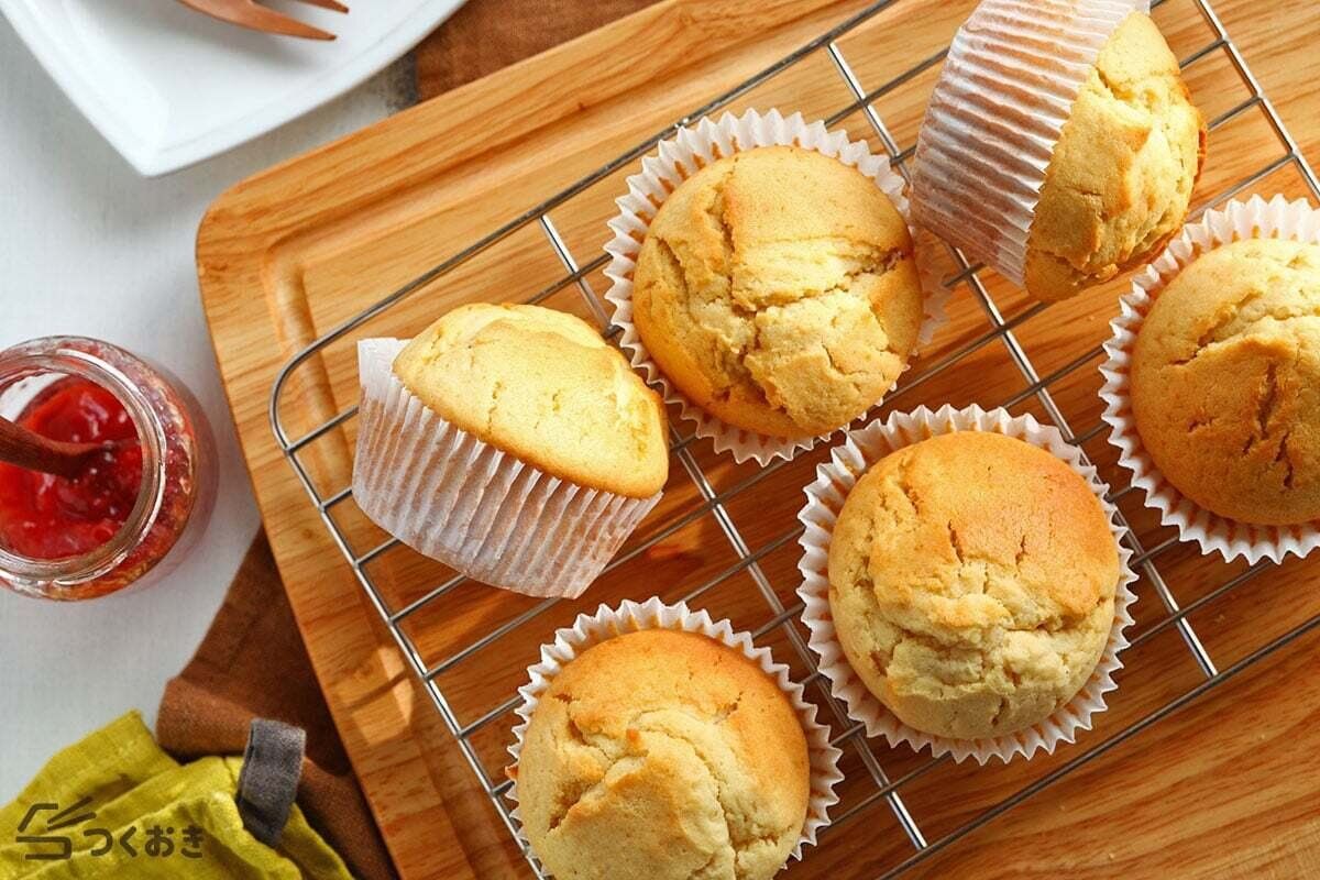約50分で完成するしっとりマフィンのレシピです。常温で数日日持ちするので、おやつにも◎。お気に入りのトッピングやジャムなどを混ぜ込んで、アレンジもお楽しみください。