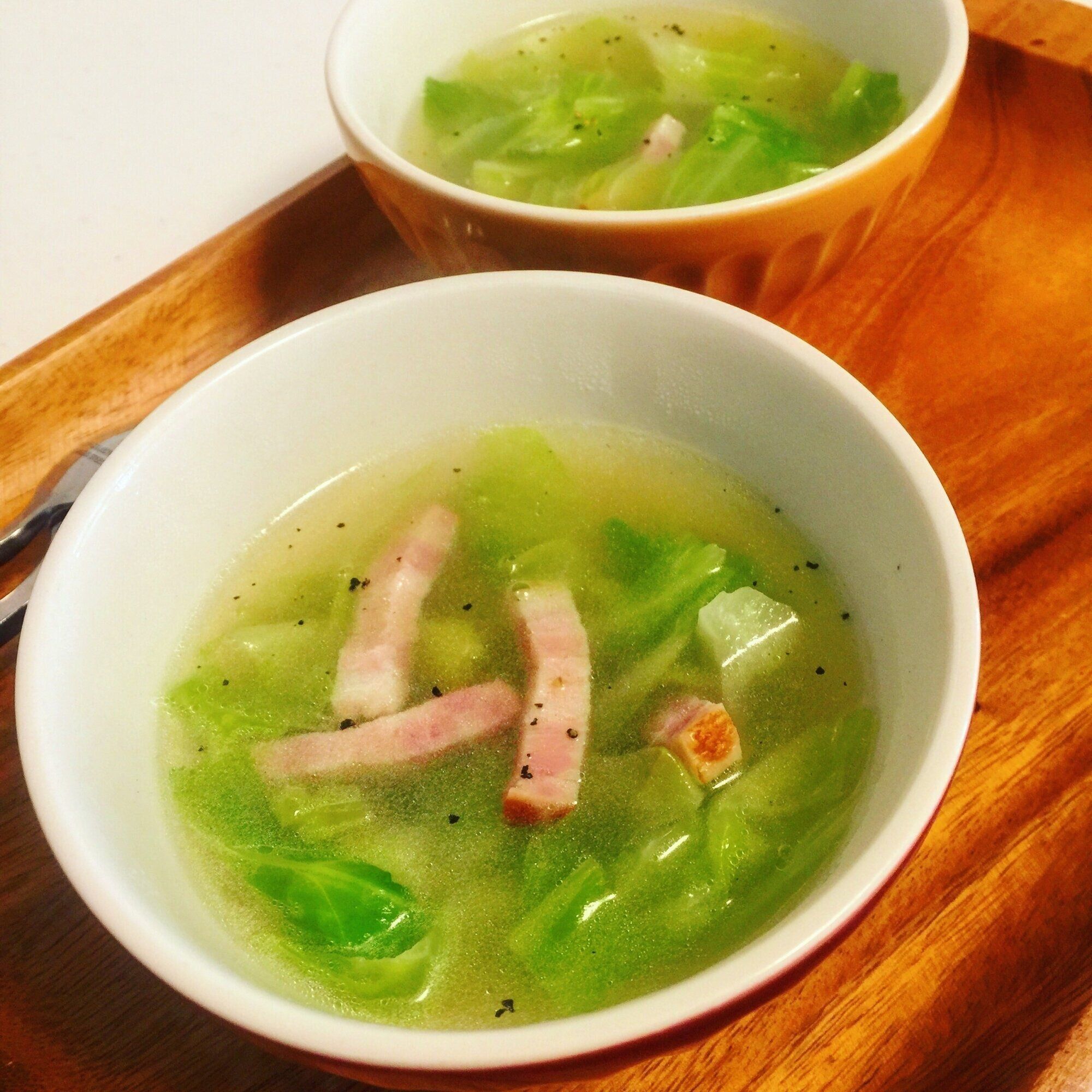 朝食にピッタリ!キャベツとベーコンのスープ