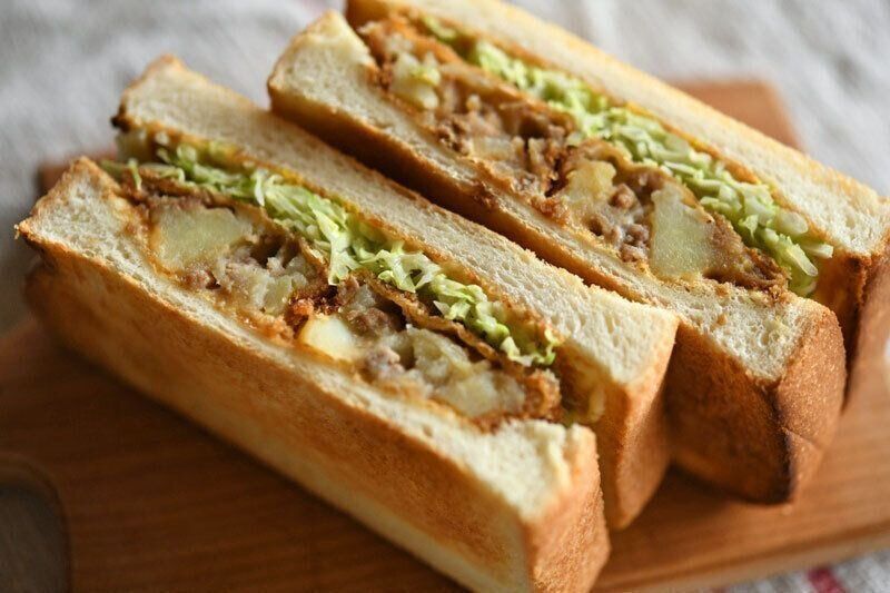 手作りしたコロッケが余ったら、翌朝はコロッケサンドにするのはいかが。カリカリの食パンとシャキシャキの千切りキャベツ、ソースが染みたコロッケを挟めば、ごちそう朝ごはんの完成!コロッケはしっかり温めてからつくるのが、おいしくなるコツです。