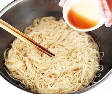 (1)そうめんにごま油を混ぜる