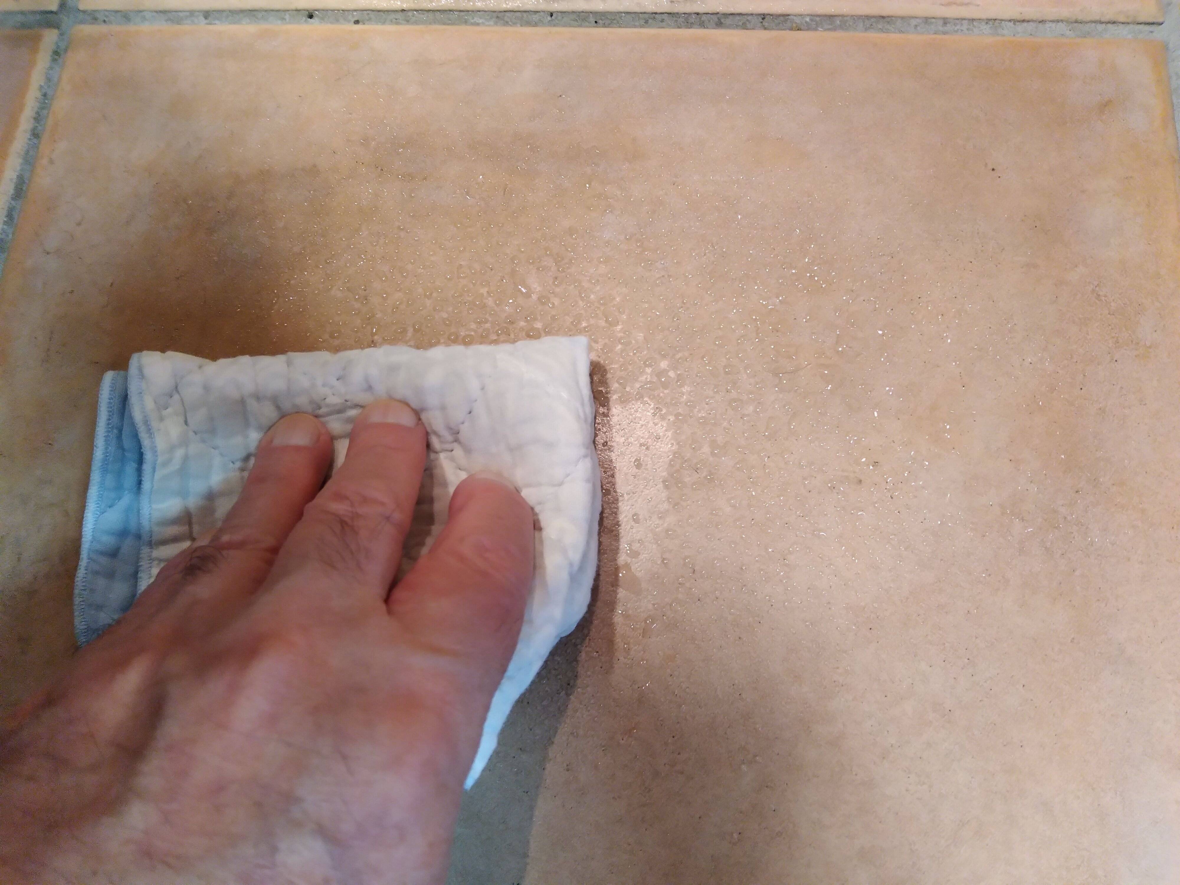 「水を最初にまいてしまうと、汚れがタイルなどにこびりついてしまって取れにくくなってしまうのです」とのこと。