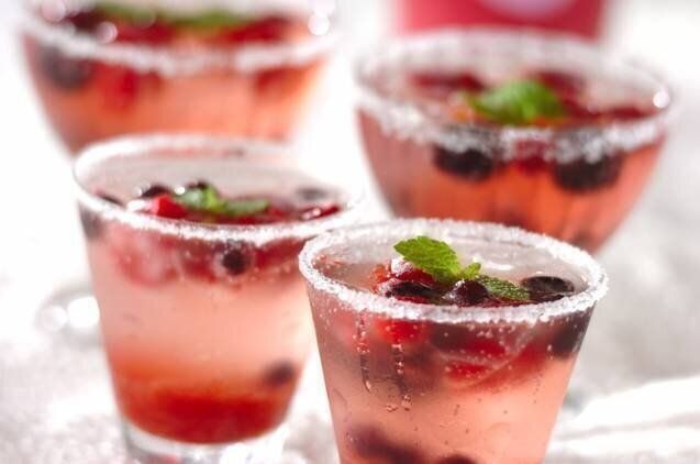 さわやかな炭酸水に、甘酸っぱいジャムとベリーがよく合うドリンクレシピです。華やかな見た目と色合いが、パーティーにもぴったり。最後にミントを飾ると、さらにおしゃれ度がアップします。