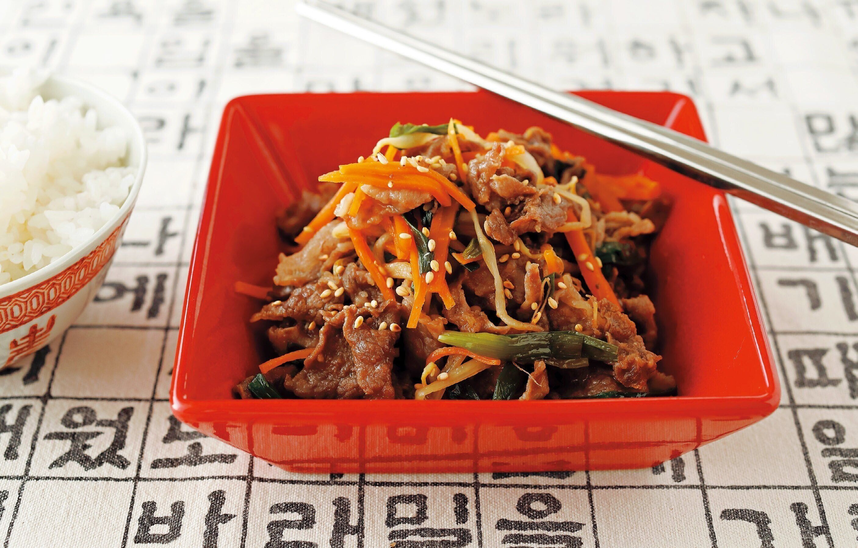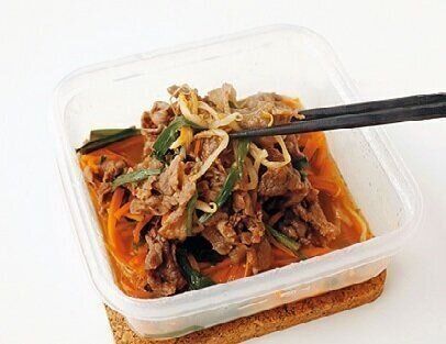 A プルコギは、もやしがないと肉がくっつくので、もやしは必ず使って。コンテナに入る量なら、ほかの野菜を使っても、量を増やしてもOK。