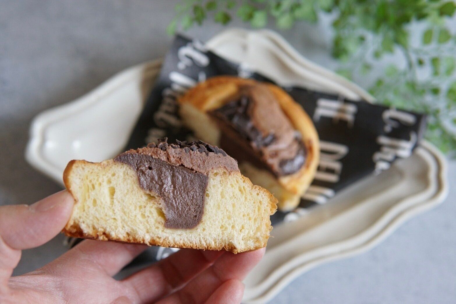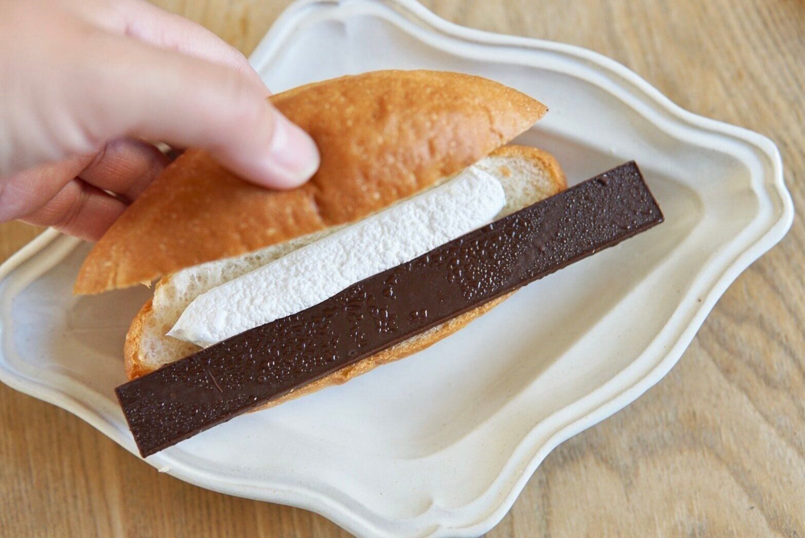味わいのあるパンの旨味とビターめなパンチのある甘みのチョコ、それをふわっとした軽さとミルキーな味わいのホイップが上手にまとめていました。それぞれの良さをしっかり楽しめるバランス最高。そしてたっぷりはみだして入っているチョコは、本当に板チョコの厚みでした。