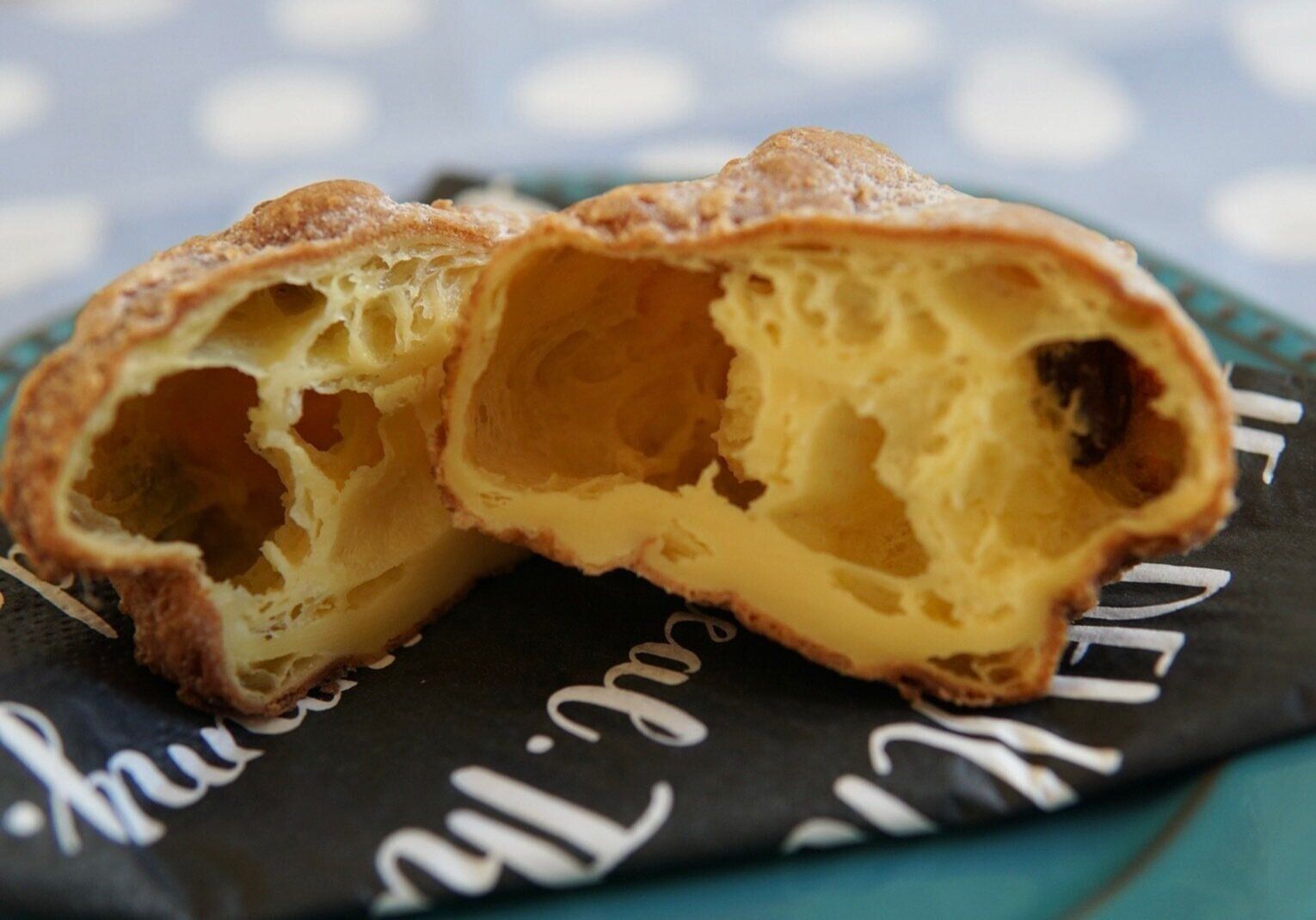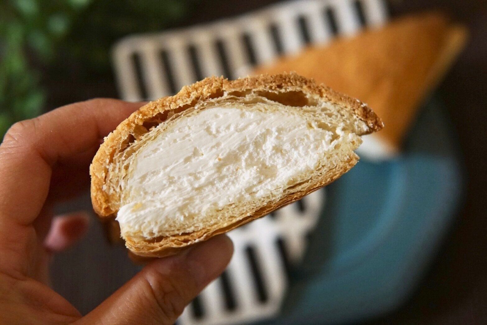 バター風味のビスケット生地とパイ生地を組み合わせたパン生地の中には、北海道産生クリームを使ったホイップクリームが。軽めな食感のクリームのコクとミルク感がたまりません。表面のビスケットのひび割れ具合にもそそられます。店頭で見たときに表面焼き色の個体差があるなと感じました。