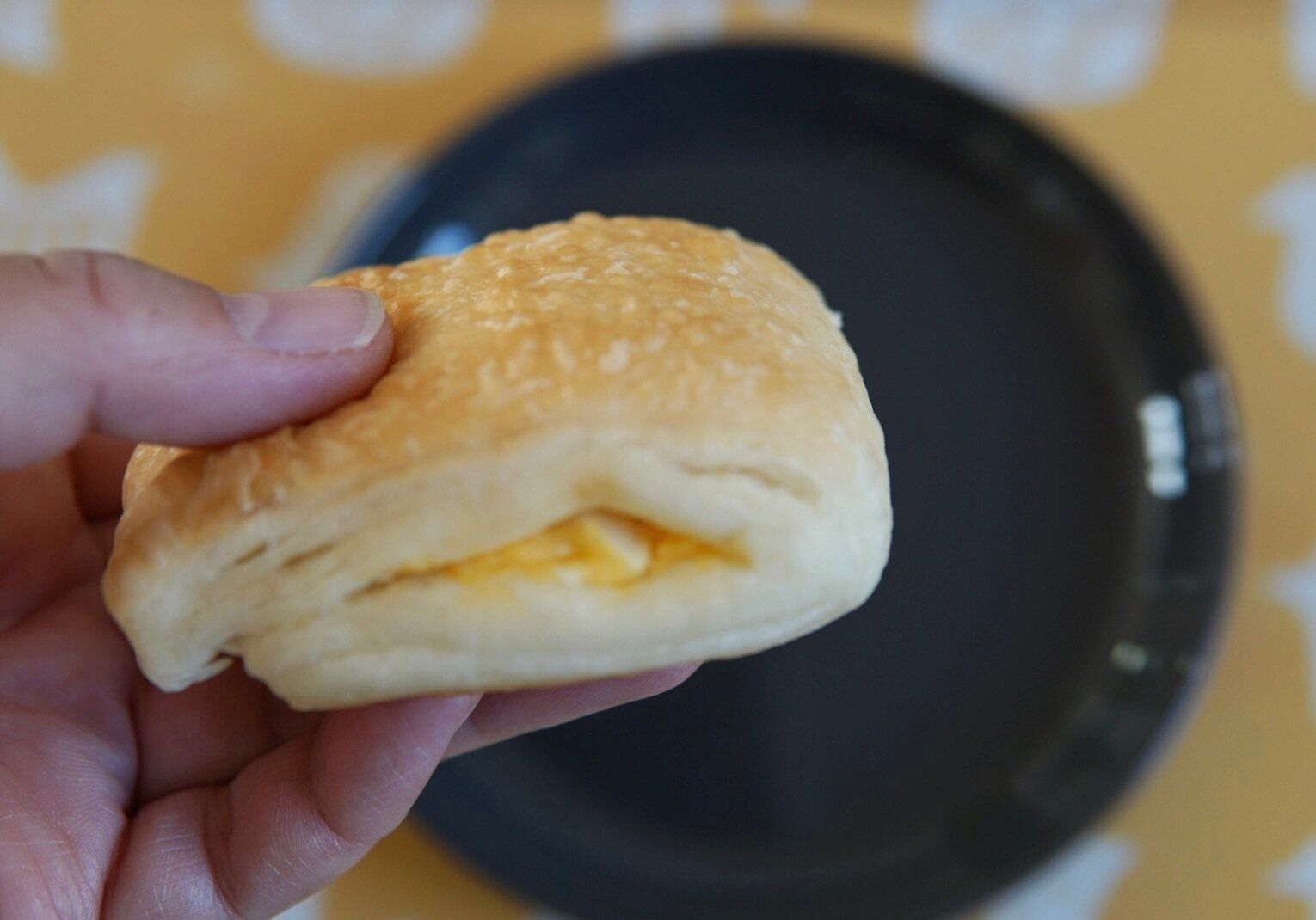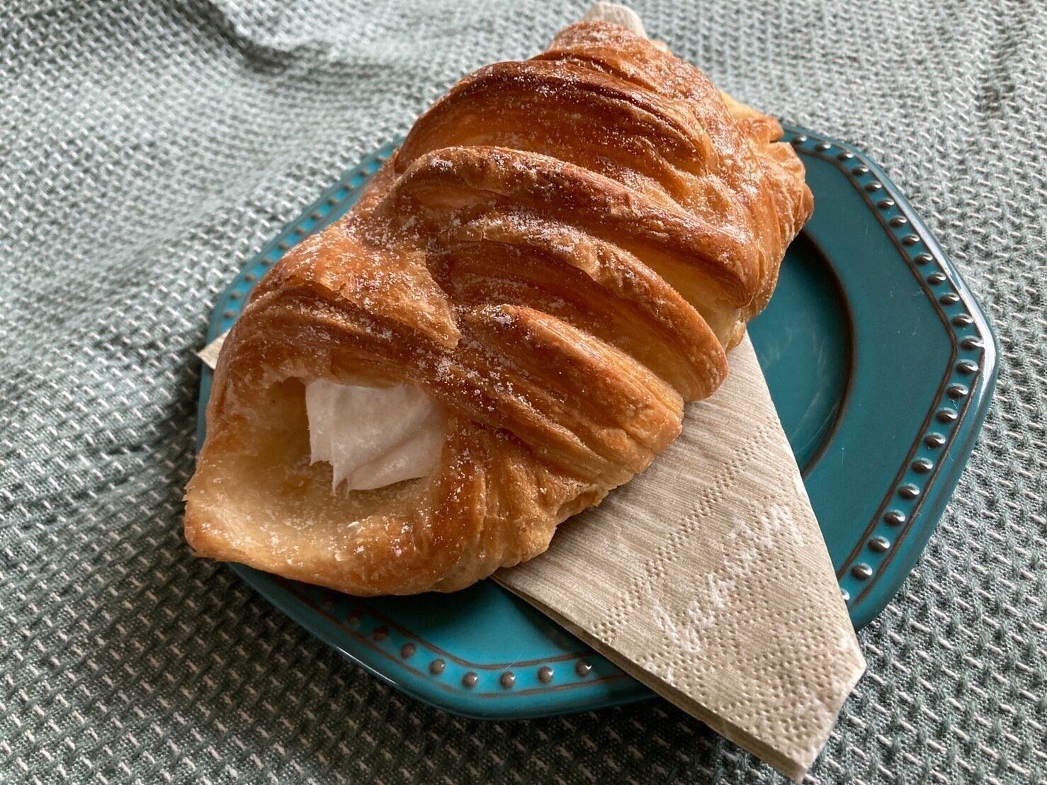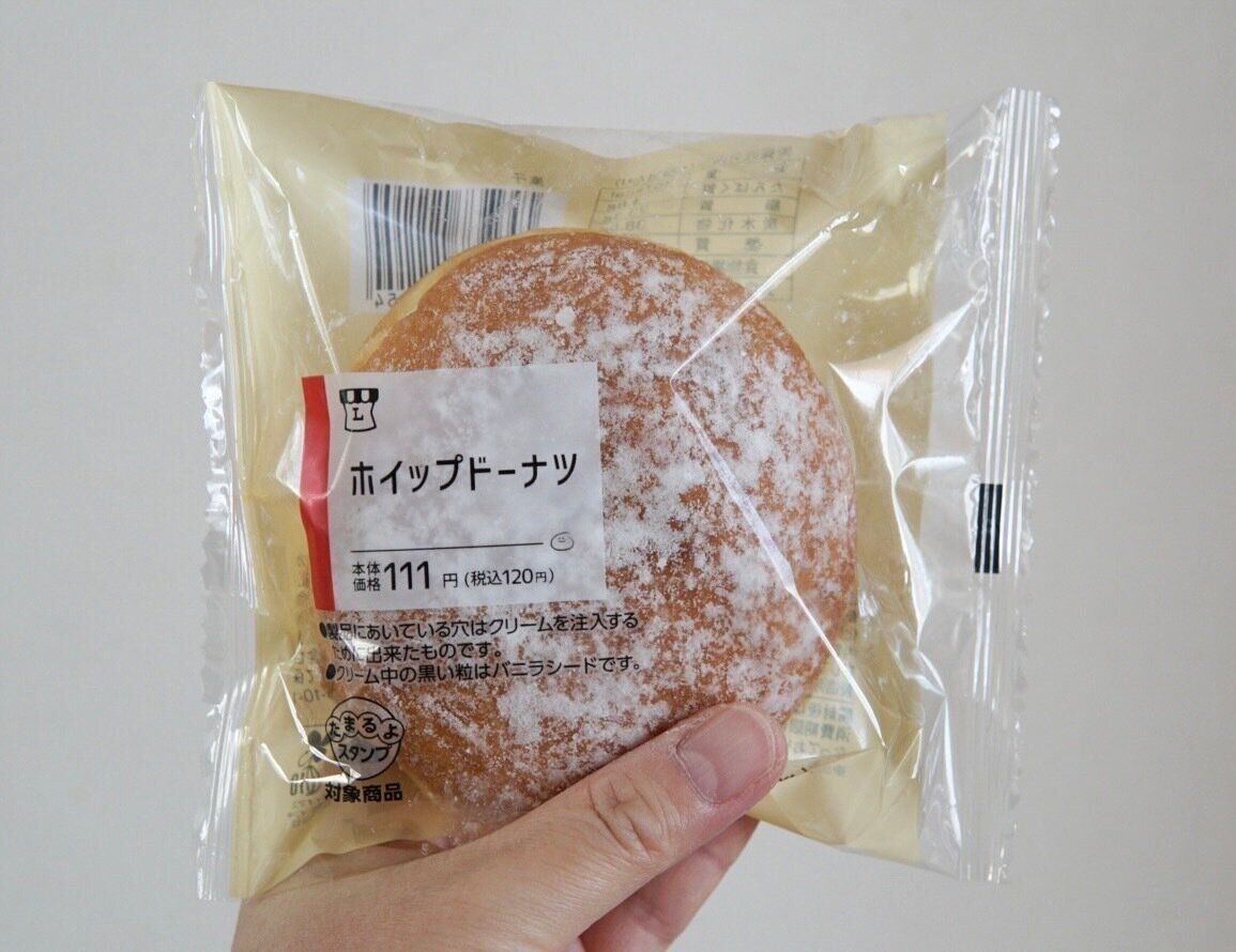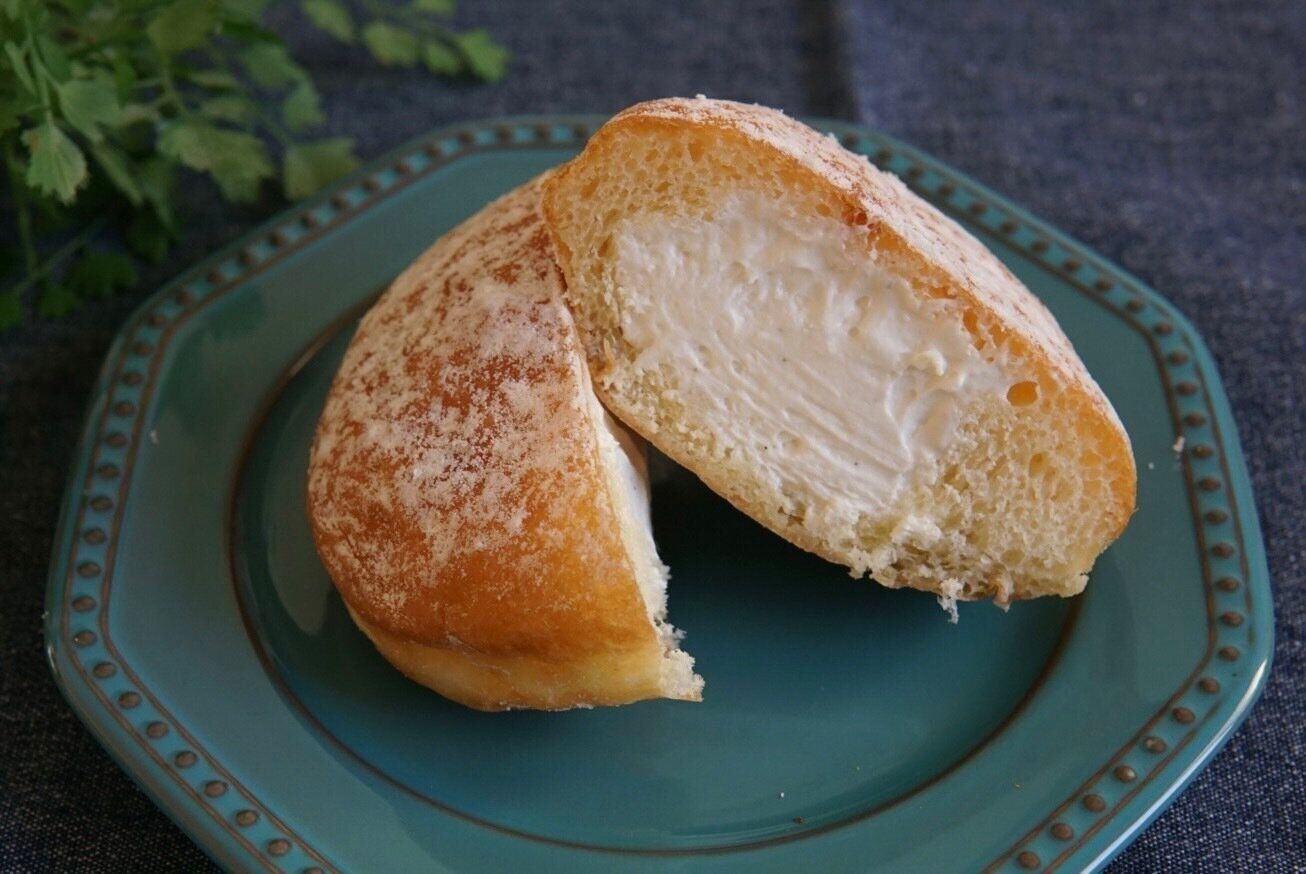 粉砂糖がたっぷりかけられたデニッシュ生地の中には、甘~いホイップクリームがぎっしり。最初から最後までたっぷりと入っているのでカロリーも高いですが、スイーツ感もあり満足度抜群です。コクがあるホイップクリームは冷凍するとソフトクリームみたいな感じで美味しいです。
