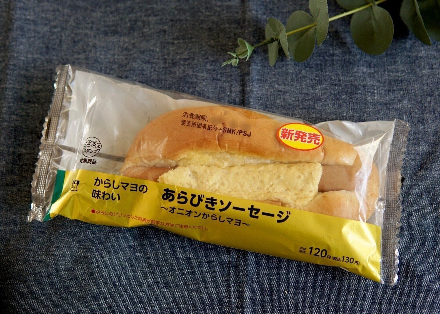 昔からあるソーセージパンの定番といえば、からしマヨとの組み合わせ「あらびきソーセージ」が販売中です。