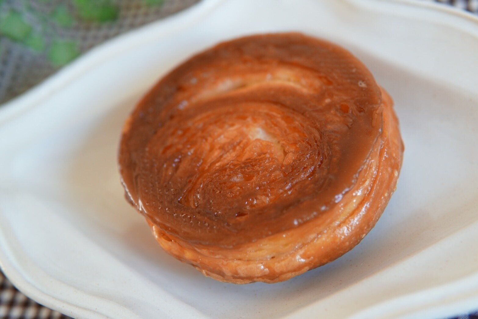 シンプルなクロワッサン、でもこの形美しすぎませんか?生地はほんのりと上品な甘さ、外側はビスケット生地でパリパリッ中はフワッ。上にかけられた砂糖が甘みを強調したり、ザクッとした食感をプラスしてくれているのが美味しいポイントです。