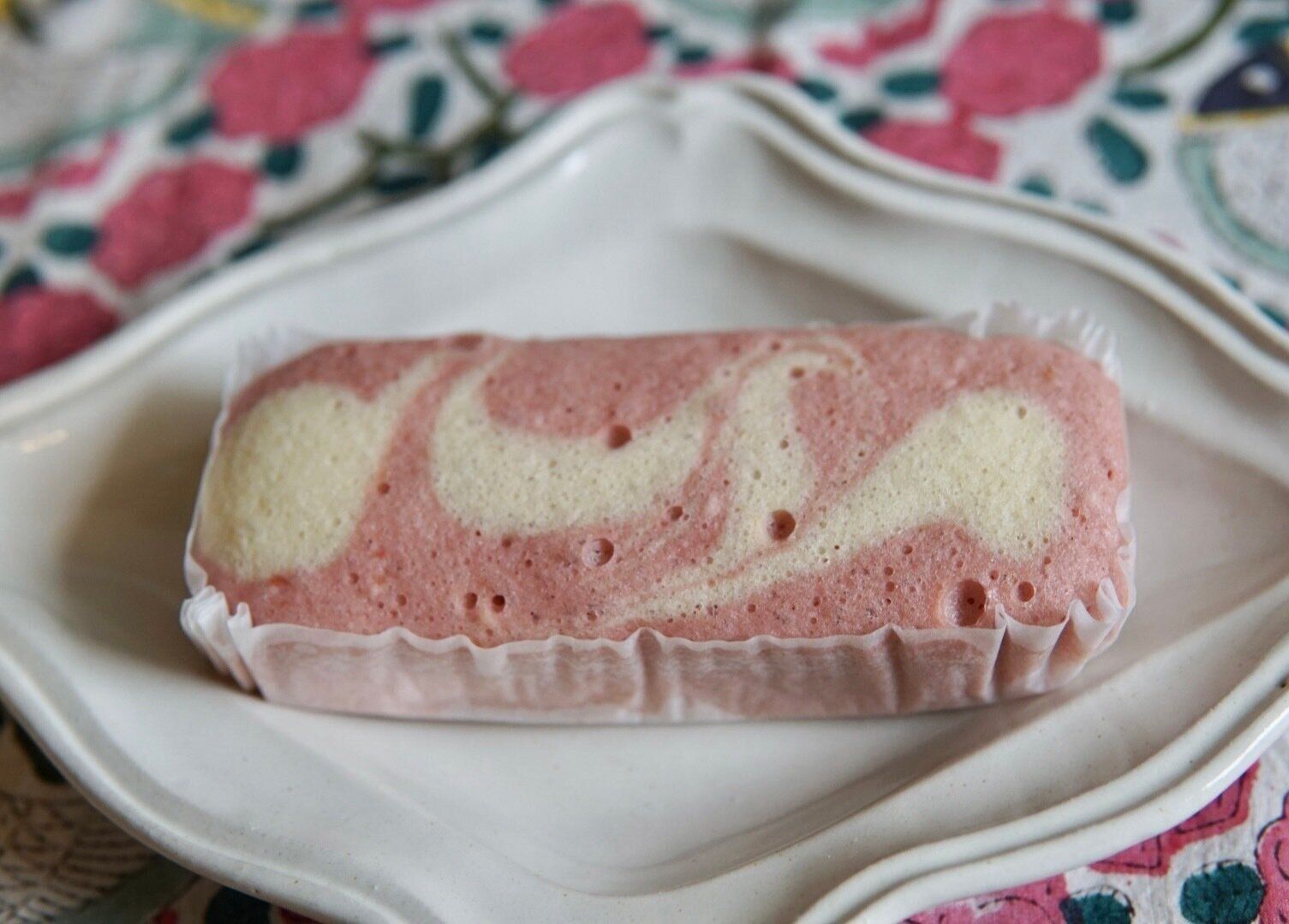 1月6日購入 マーブル模様が美しく、そして優しい味がする「たんぱく質が摂れるいちごの蒸しケーキ」