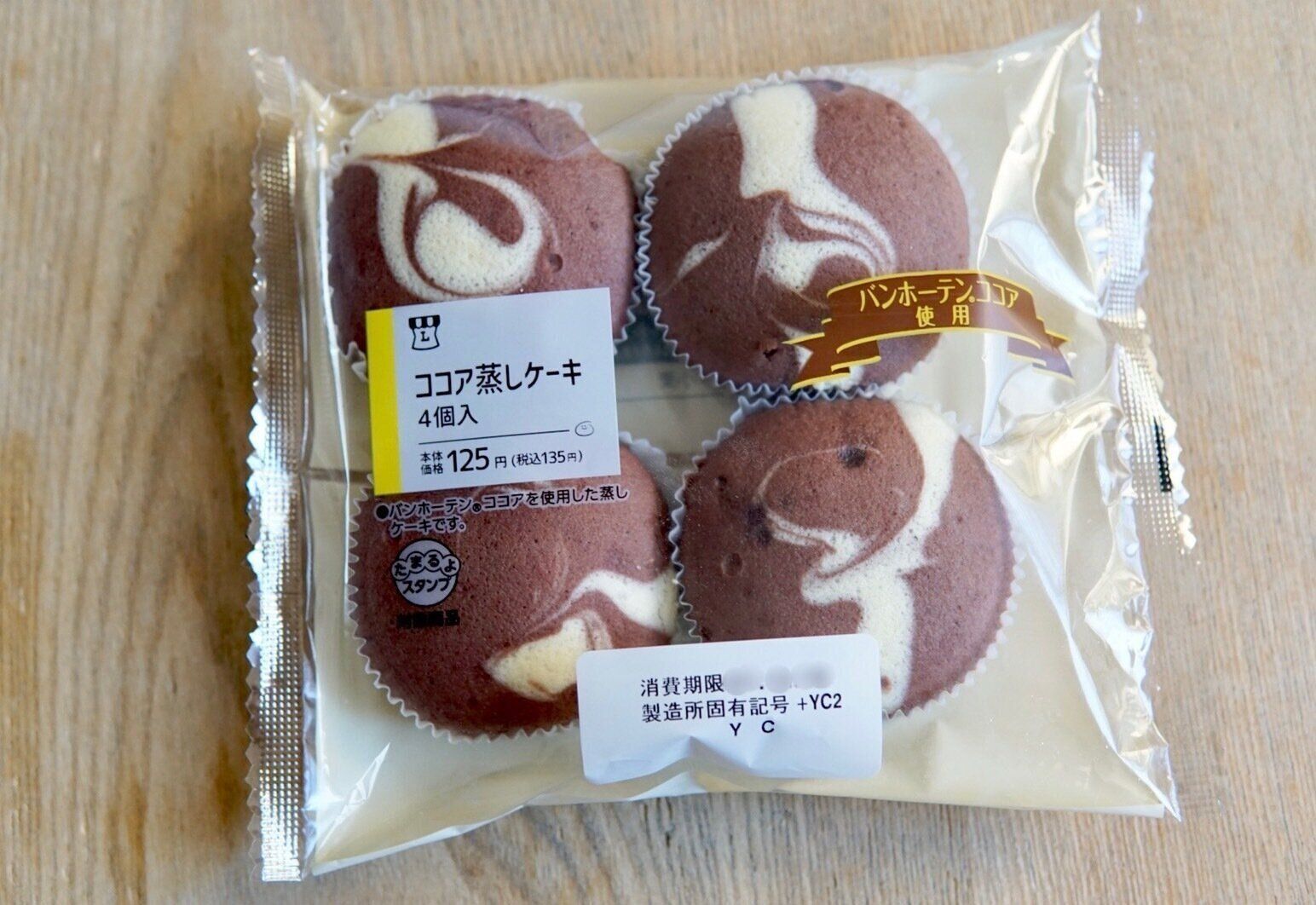 マーブル模様の美しさが目を引く「ココア蒸しケーキ」4個入りで135円という手軽さもあってなのか、販売してもなかなかお目にかかることができませんでした。