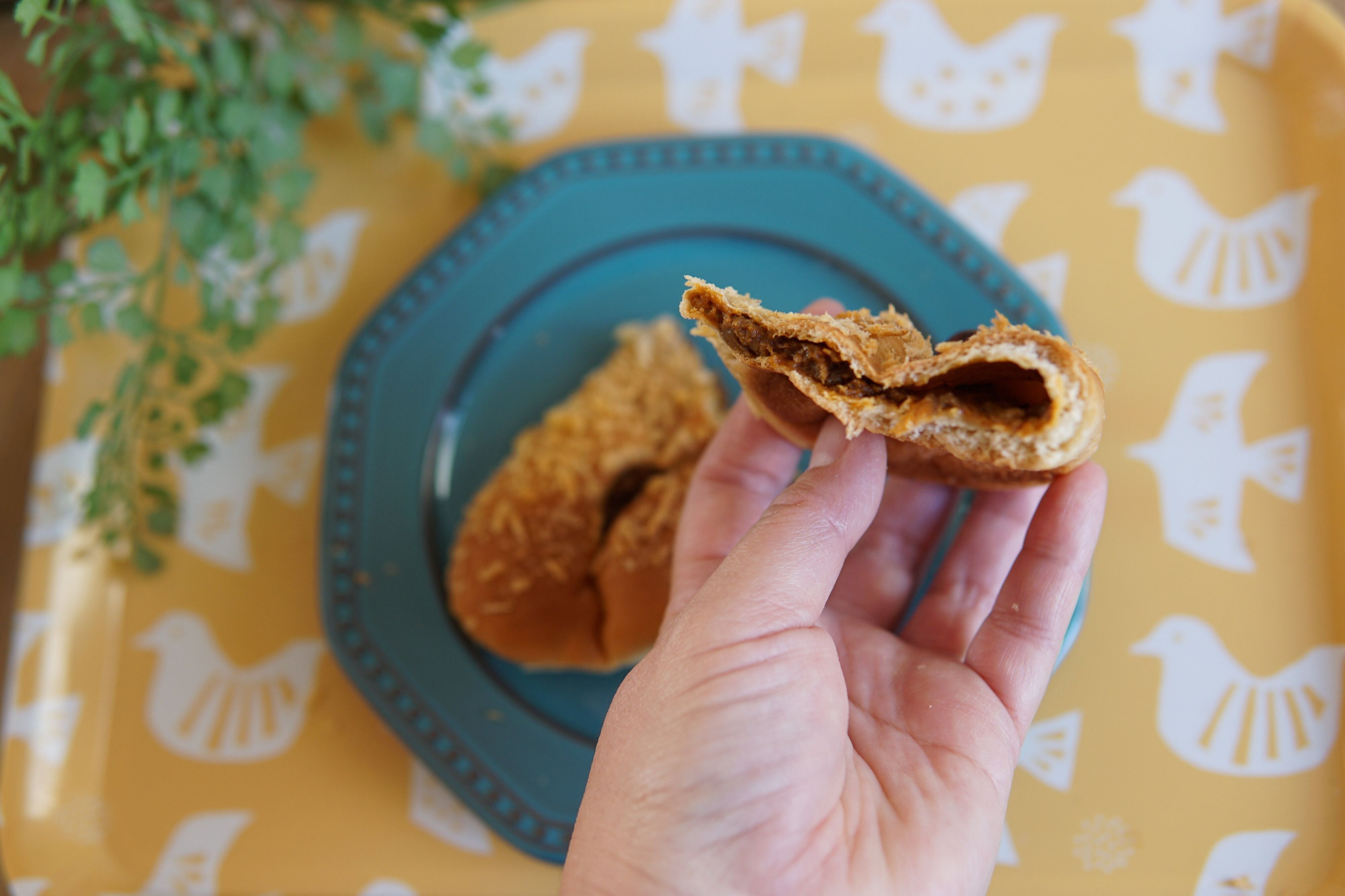焼きたての繊細なサクサク感とまではいきませんが、気を付けて食べないと崩れるくらいのサクサクパイ生地に濃厚なミートフィリング。さらに加えられたチーズクリームがコクを足してくれて、食べ応え抜群のミートパイに仕上がっています。パイ生地が焦げないようにアルミホイルを上に置いてトースターで温めてあげると更にビーフ感が増して美味しくいただけます。