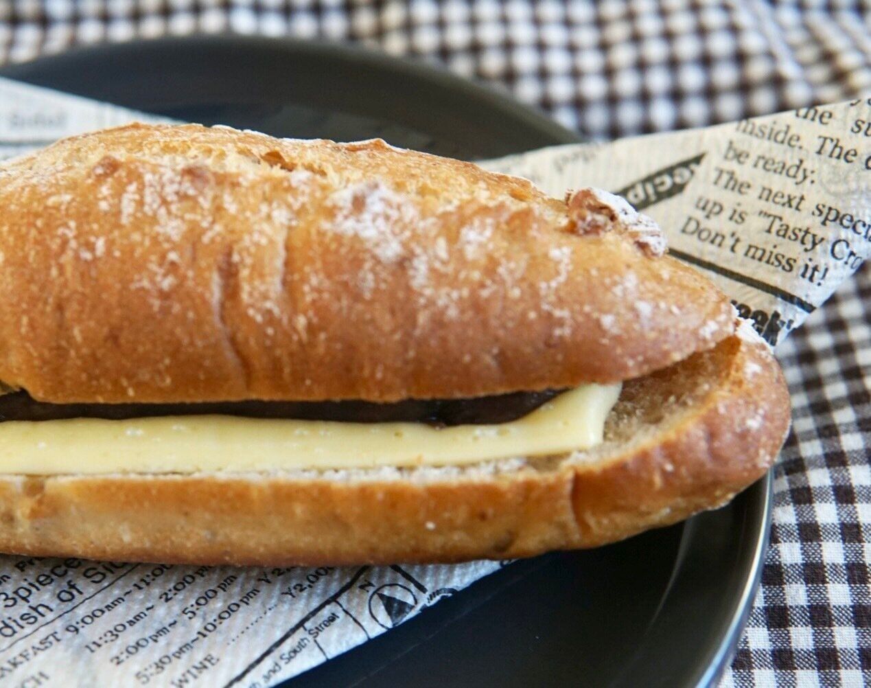 もち麦が使われており、普通のフランスパンよりもふんわりもっちりとした素朴な味わいのパン。3種類組合わせられたトッピングのチーズからは強くて深いコクと塩気を感じます。また、あたためるとチーズの風味がさらに強く感じられ、より美味しくいただけます。