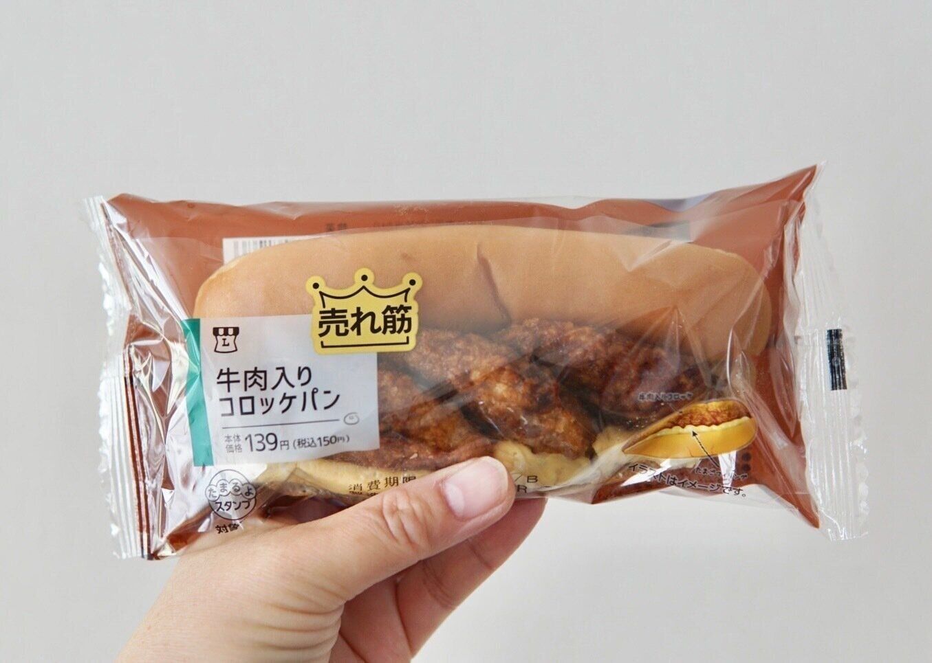 ローソン公認の「売れ筋」マーク付き。ネット上にも多くの高評価レビューが見られる人気定番総菜パンの一つが「牛肉入りコロッケパン」です。