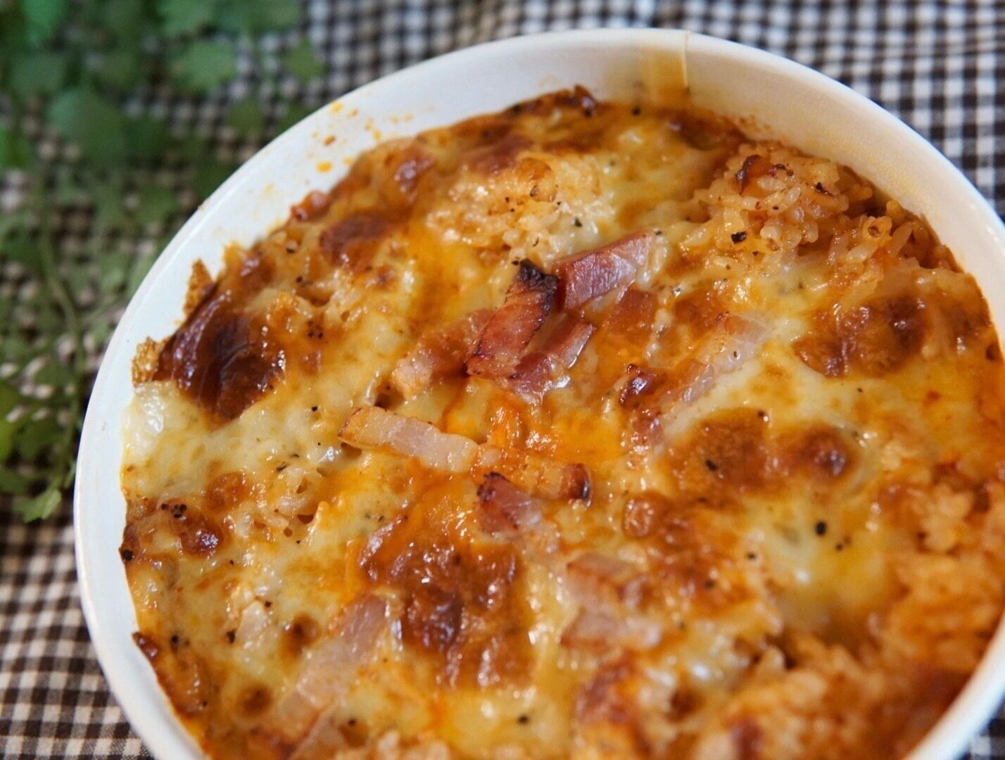 赤から鍋が大好きで最後は必ず雑炊にしていただくのですが、またそれとは違う味わい。辛さは控えめ、それ以上に甘みと旨味が強めでとろーりチーズやベーコンとの相性が◎。ボリュームがあるので、ずっと同じ味が続くと飽きちゃうという方はサラダやゆで野菜などを合わせるとより美味しくいただけると思います。
