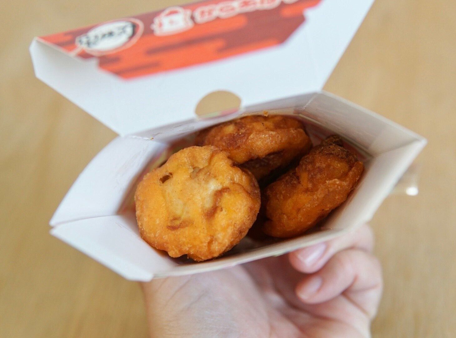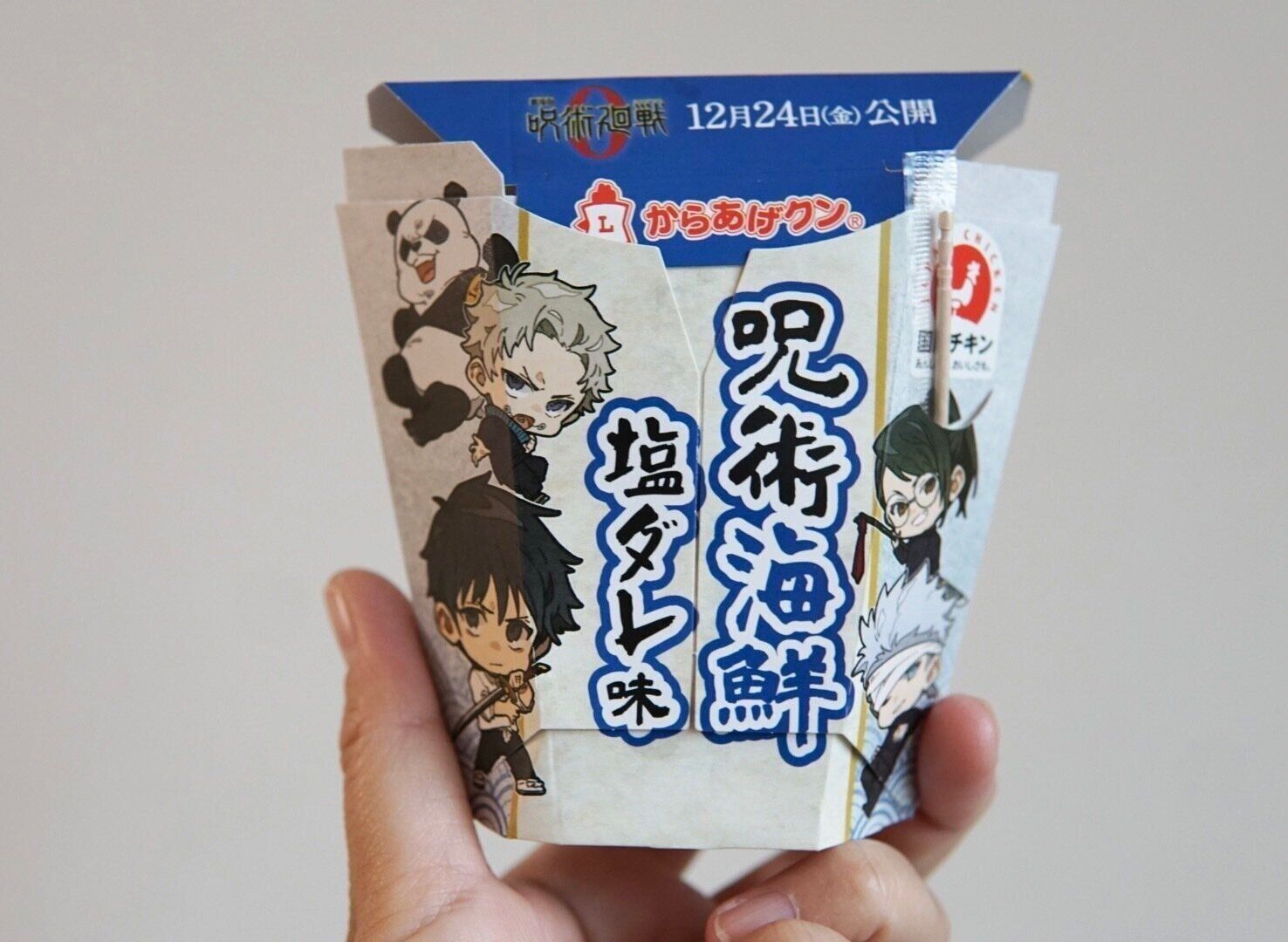 12月24日に「呪術廻戦 0」が劇場公開される、週刊少年ジャンプで大人気連載中の「呪術廻戦」タイアップ商品。パッケージに施された主要キャラクターのイラストが可愛いです。あさりと帆立の貝のうまみをベースに海老エキスと魚醤でコクを加え海鮮感を表現したこの商品。口の中に入れると帆立っぽい海鮮の風味を感じて、からあげなのに・・・と、不思議な感覚に襲われました。