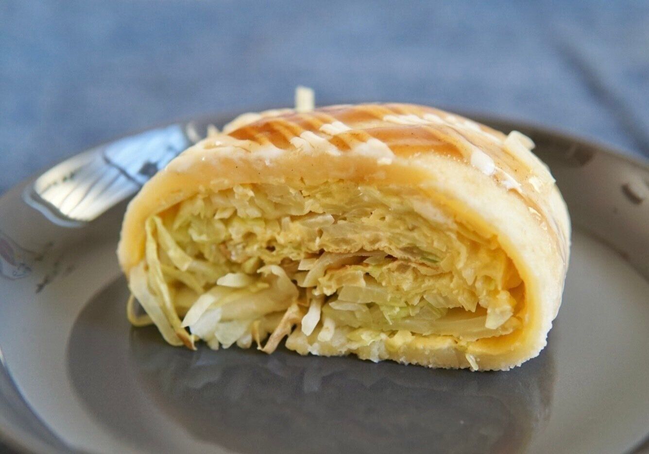 ダンピンとは台湾式たまごクレープのことで、台湾では朝食として食べられることが多いそうです。厚めでもちもち食感の白い生地、その内側には玉子らしき黄色い層が。具材はツナマヨとたっぷりキャベツでボリューミー。一見、お好み焼きのように見えますが、ソースの味は控えめ。その分、具の味をしっかりと感じることができます。