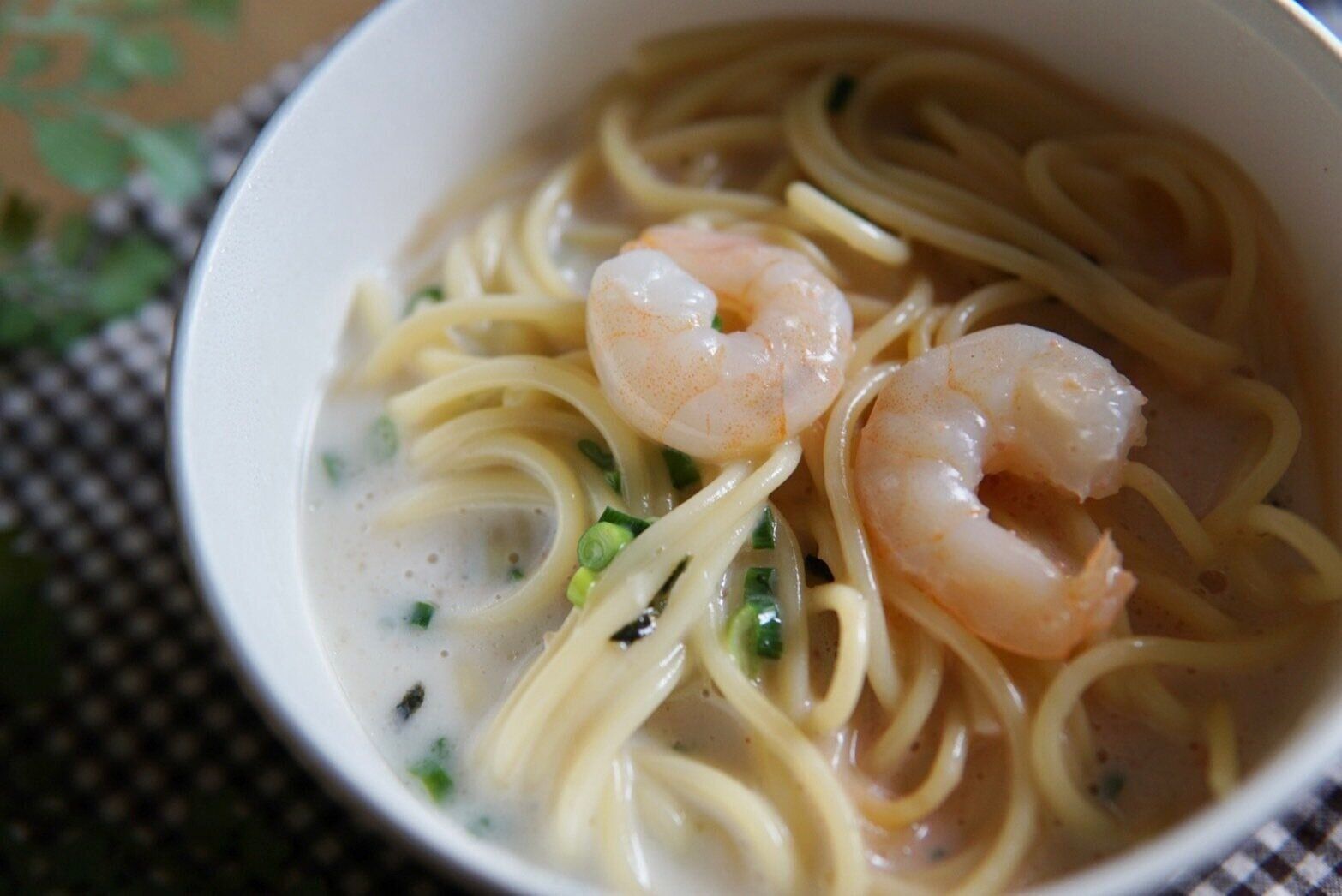 量は控えめで、食が細い方や他のグルメと一緒に食べたい方にも人気なちょい麺シリーズから、海老と明太子のクリームスープパスタが発売されました。