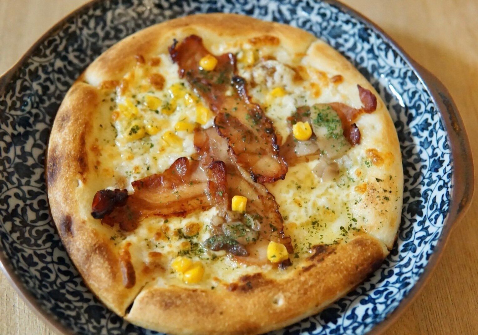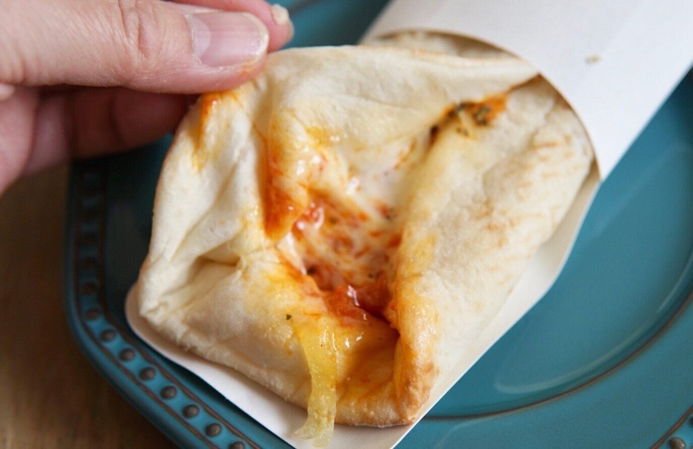 タピオカでんぷんを使用したもちもちの生地がソフトなピザ生地のようでワンハンドピザを食べているかのような感覚になりました。3種類のチーズがとろとろに溶けて混ざることで奥深いチーズの深みが感じられ、濃いトマトソースとの相性も抜群です。