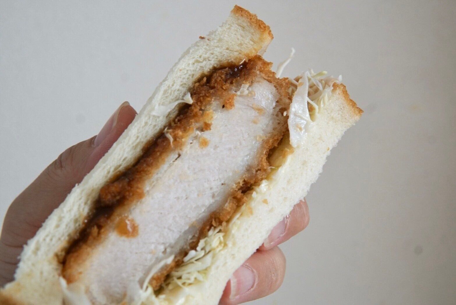 とにかく厚くてジューシー「三元豚の厚切りロースカツサンド(とんかつ まい泉監修ソース使用)」