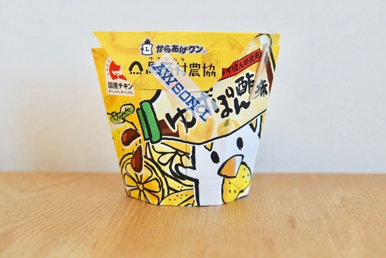 有名な馬路村のゆずポン酢を使用した、「からあげクン ゆずぽん酢味」。口に入れると、爽やかな柚子の香りとかつおだしの旨味が口の中を駆け巡ります。