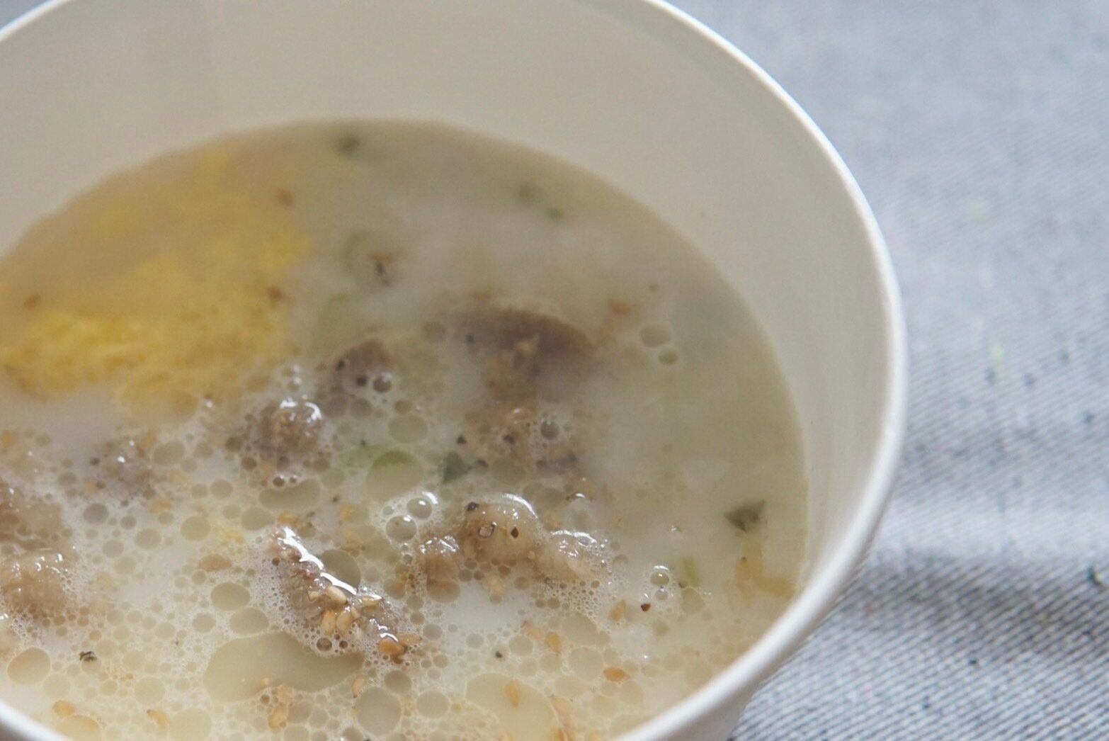 レンジで温めると出現する、ミルク感のある魚介のうまみが溶け込んだクリームスープ。明太子、そしてバターのコクがあわさり、サラッとしているけれどしっかり旨味も感じられるスープパスタです。プリプリな海老の存在感とネギと海苔のアクセントも楽しいです。