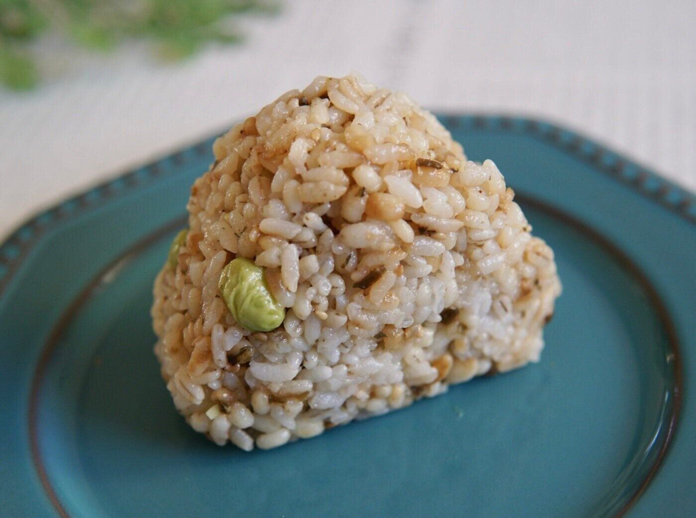 トマトソースや枝豆も入っていて具だくさんなのが嬉しいです。ぷちぷち食感のもち麦入りごはんを使用。枝豆やもち麦が入ることにより食感も豊かになっています。