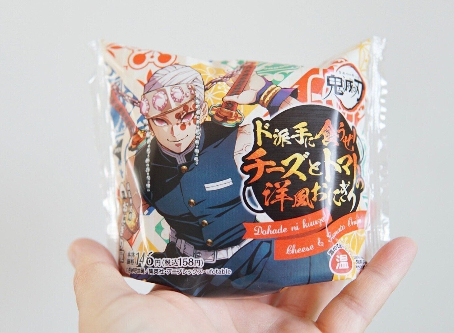 登場キャラクターの「狗巻棘」の発する言葉である「しゃけ」「こんぶ」と、好物の「ツナマヨ」を1つにした大きなおにぎり。3つの具がすべて混ぜられた状態で入っていました。これが絶品。魚、昆布、のり、マヨネーズ、旨味成分満載なおにぎり。コラボが終わってもまた食べたいと思うおいしさでした。パッケージは3種類、これもファンにはたまらない要素ですね。