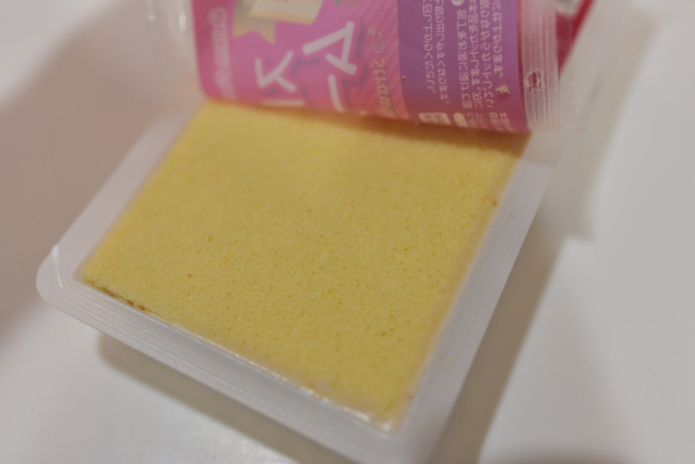 パッケージを開けるとふわふわのスポンジケーキがお目見え。