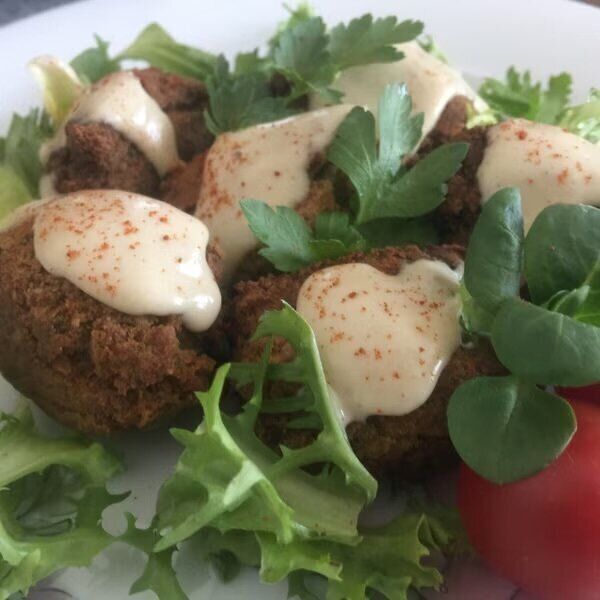 水に晒したひよこ豆をブレンダーで潰して、パセリやスパイスなど加えてスプーンで丸めて素揚げにして作る中東風のコロッケです。たんぱく質たっぷりでトレーニング中の方にもオススメ!ピタパンに挟んでも美味しいです。