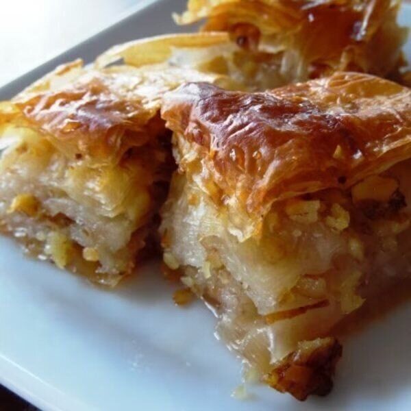 トルコの有名なお菓子、バクラヴァ。粉から作ると大変ですが、バクラヴァ・ユフカというシートを使って簡単に。パイのような重なった層の中にバターとシロップが染みています。胡桃の食感と香ばしさが良いアクセントになる、シンプルなおやつです。