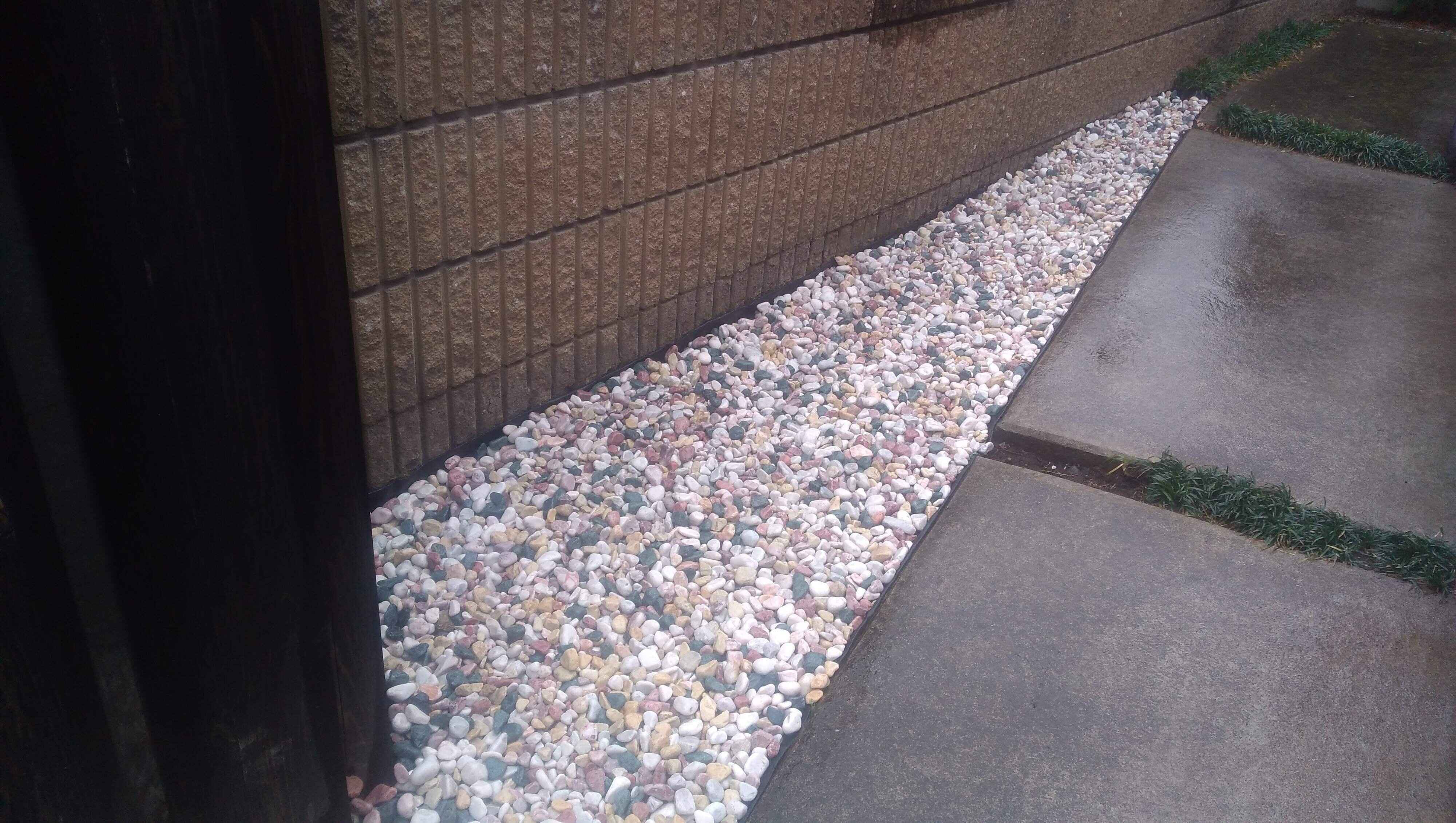 どうでしょう?土だったときよりもパッと明るく、見た目もキレイになりました。(白くなりすぎないように「ミックス」タイプの砂利を購入したのですが、思ったより白いような…)