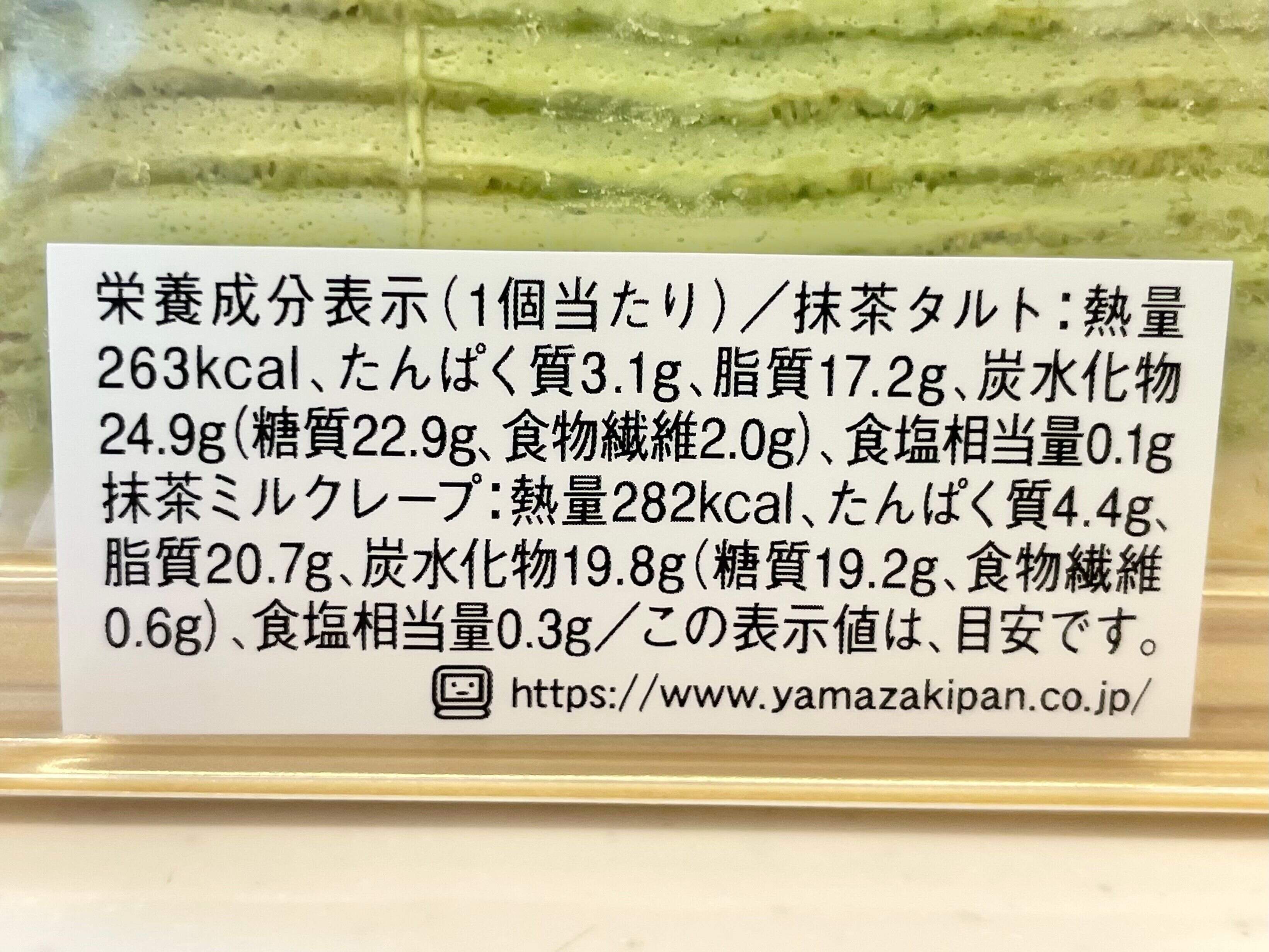 抹茶タルトは263kcal抹茶クレープは282kcalと抹茶タルトの方が少し低カロリーです。