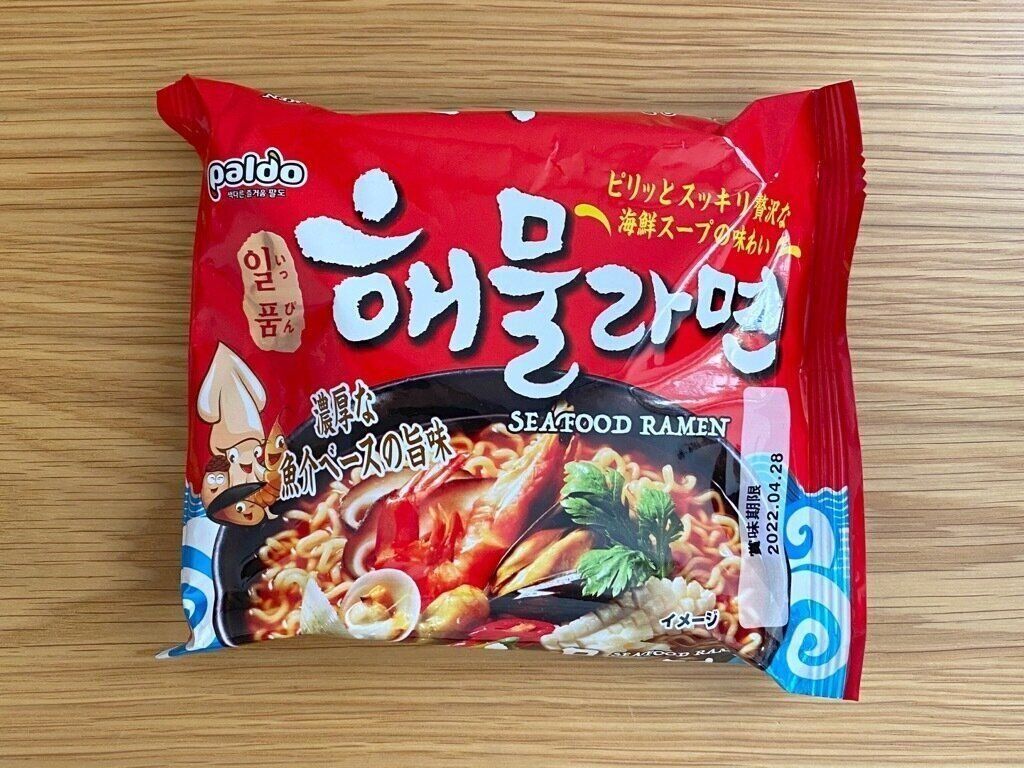 辛い物好きには心地よいくらいの辛さで、「辛ラーメン」より少しマイルドな印象。海鮮の旨みの効いたスープと麺もよく合っています。