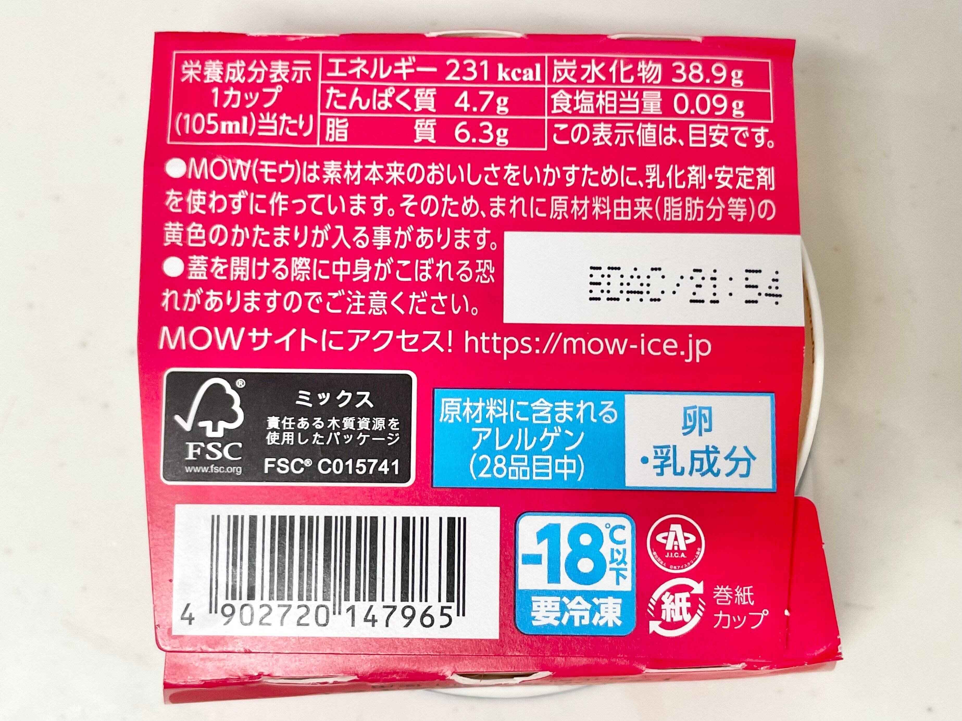 「MOW PRIME(モウ プライム)ダブル北海道あずき」は、コク深いミルクアイスの真ん中につぶあんが入っていて、甘納豆がトッピングされています。