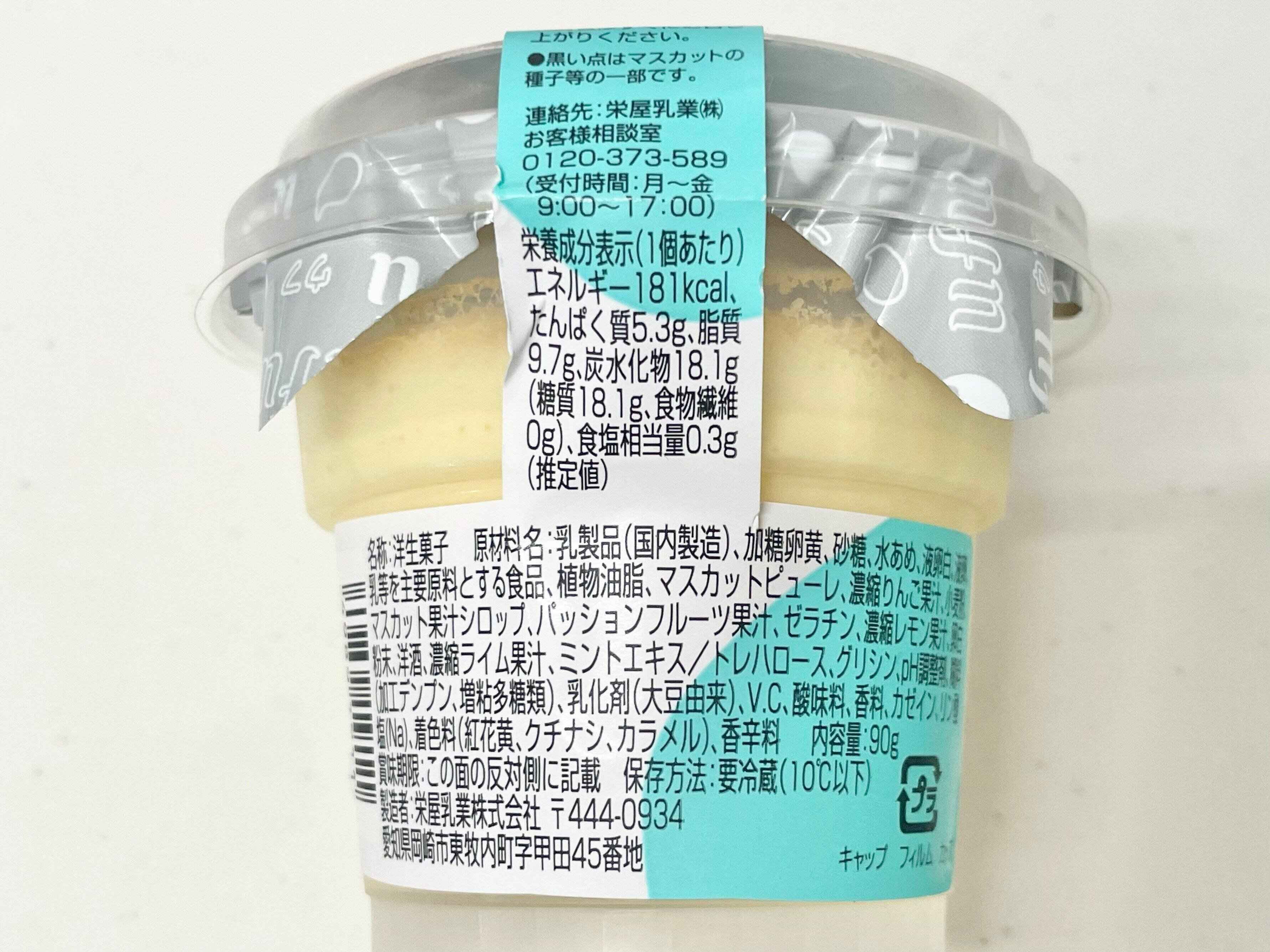 原材料は乳製品が多く、マスカットピューレやマスカット果汁シロップやパッションフルーツ果汁、レモン果汁などとさわやかな印象。