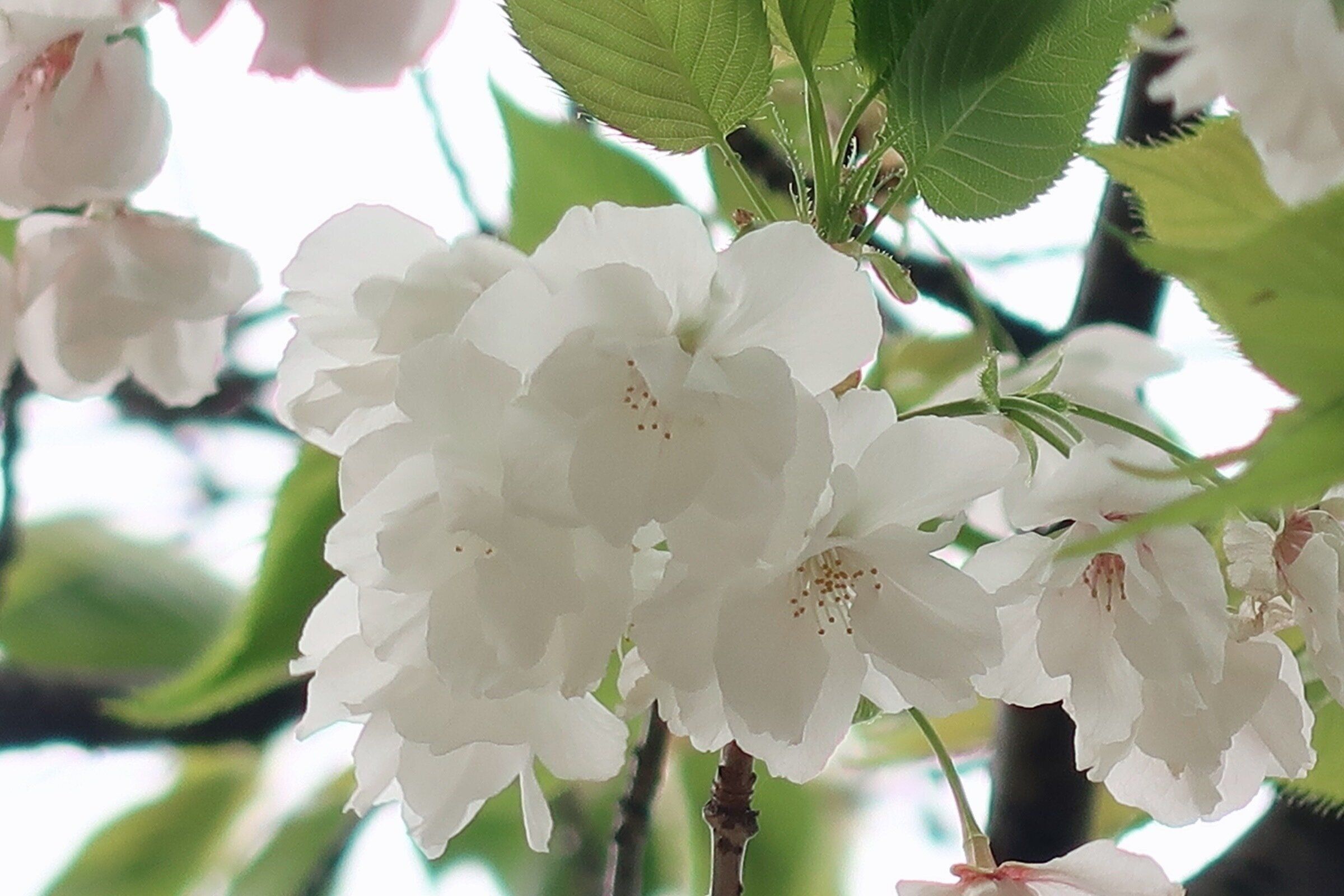 「サトザクラ」の園芸品種で、白色の八重咲き。