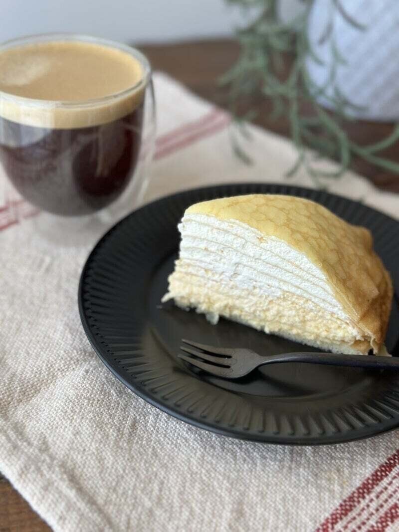思わずひとくち食べたら、目を閉じてうっとりしたくなるほどおいしい!ホイップクリームと、カスタードクリームの2種のクリームがたっぷりと使われてクレープとともに層になっているのですが、クリームの割合が多いので、とにかく口の中でふわ〜っととろけるんです。これは次世代のミルクレープかも!と感動しましたよね。