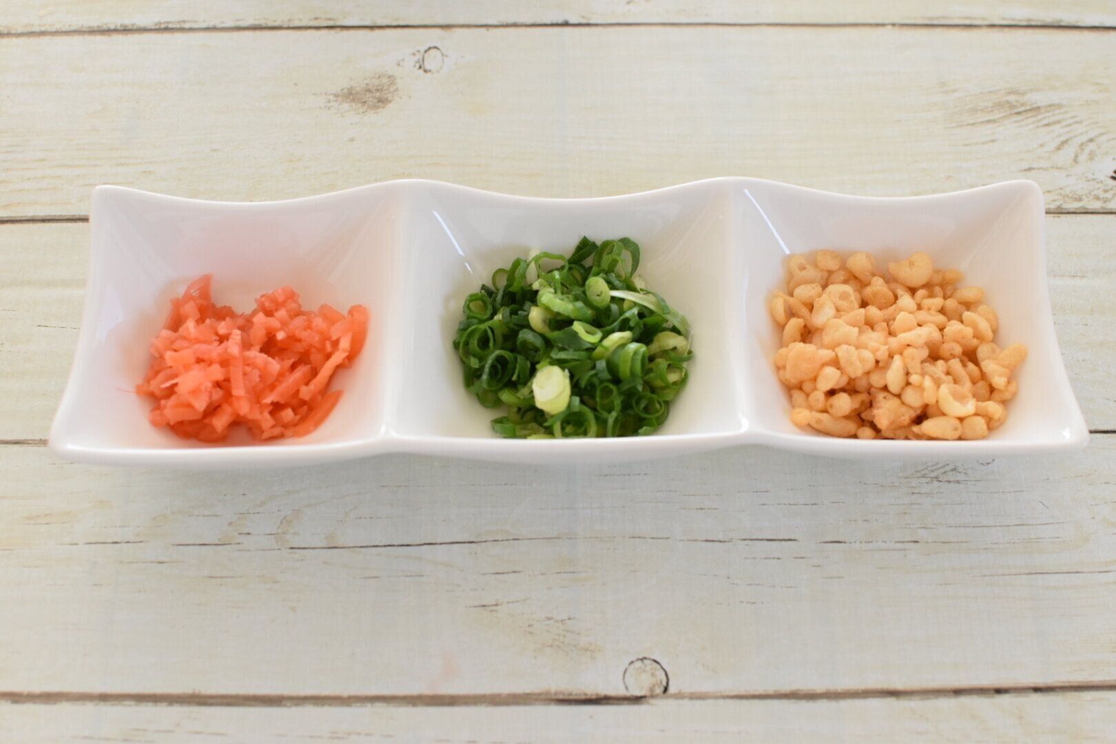 よりおいしく食べるためにあるとうれしい食材が、ねぎ、紅ショウガなどの薬味。