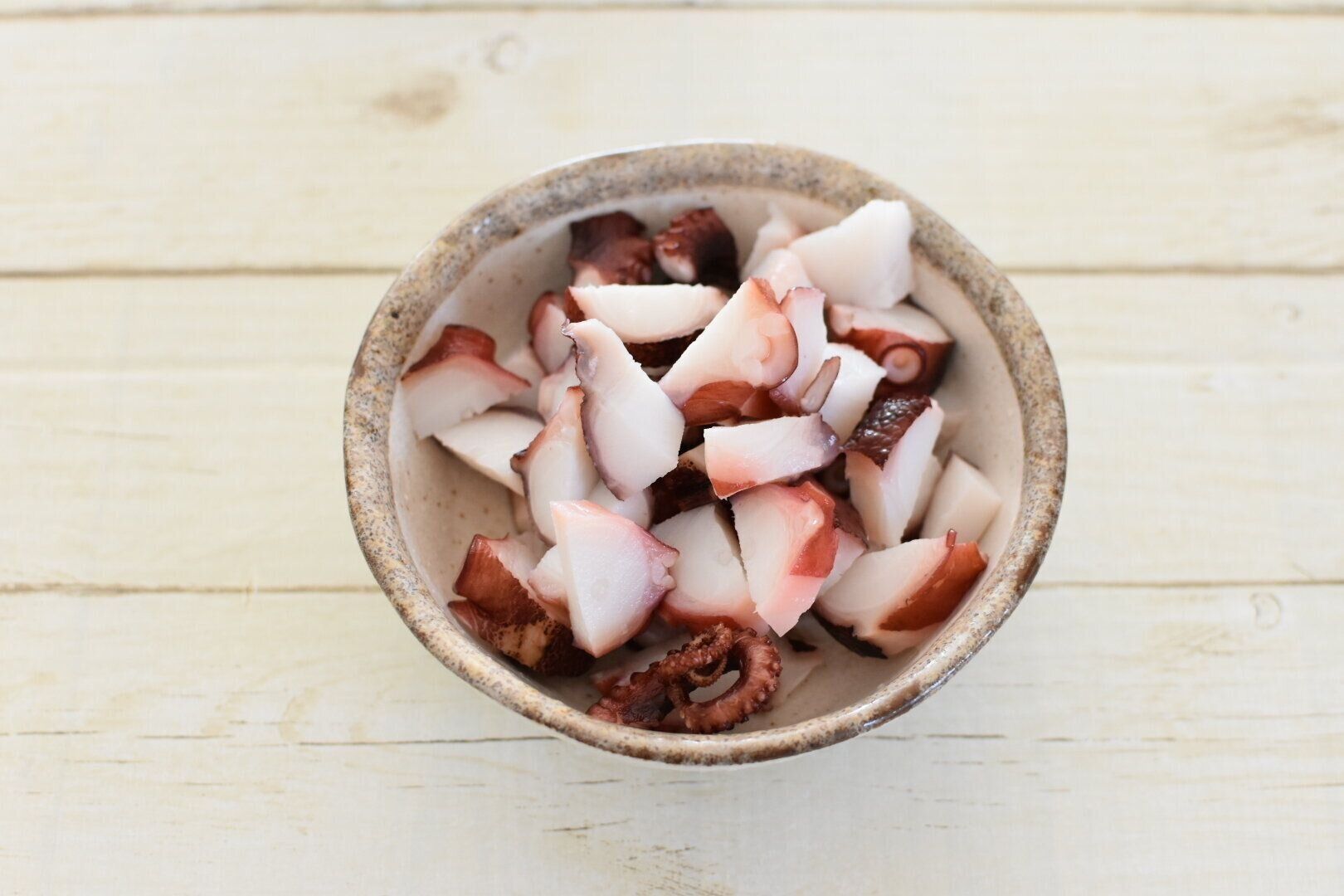 弾力のある食感やプチプチとした吸盤の食感が魅力ですが、スーパーによっては売っていないこともありますので、確実に使いたいときは冷凍のたこを使うのが便利ですよ。