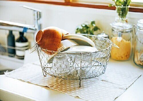 ずっと前から欲しかった、京都・鳥井金網工芸の水切りかご。「地元の百貨店のイベントで現物を確認し、デザイン性、機能性に納得して、思い切って購入しました」。