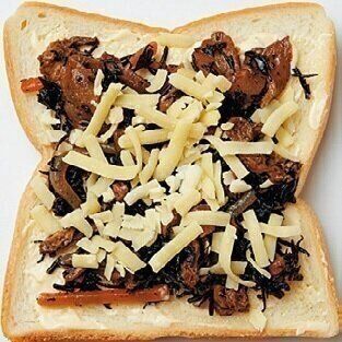 マヨネーズをパンに塗り、ひじきの煮もの、チーズの順にのせる。
