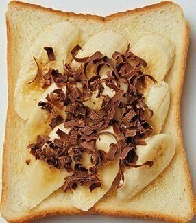 はちみつをパンに塗り、バナナを並べ、チョコを散らす。